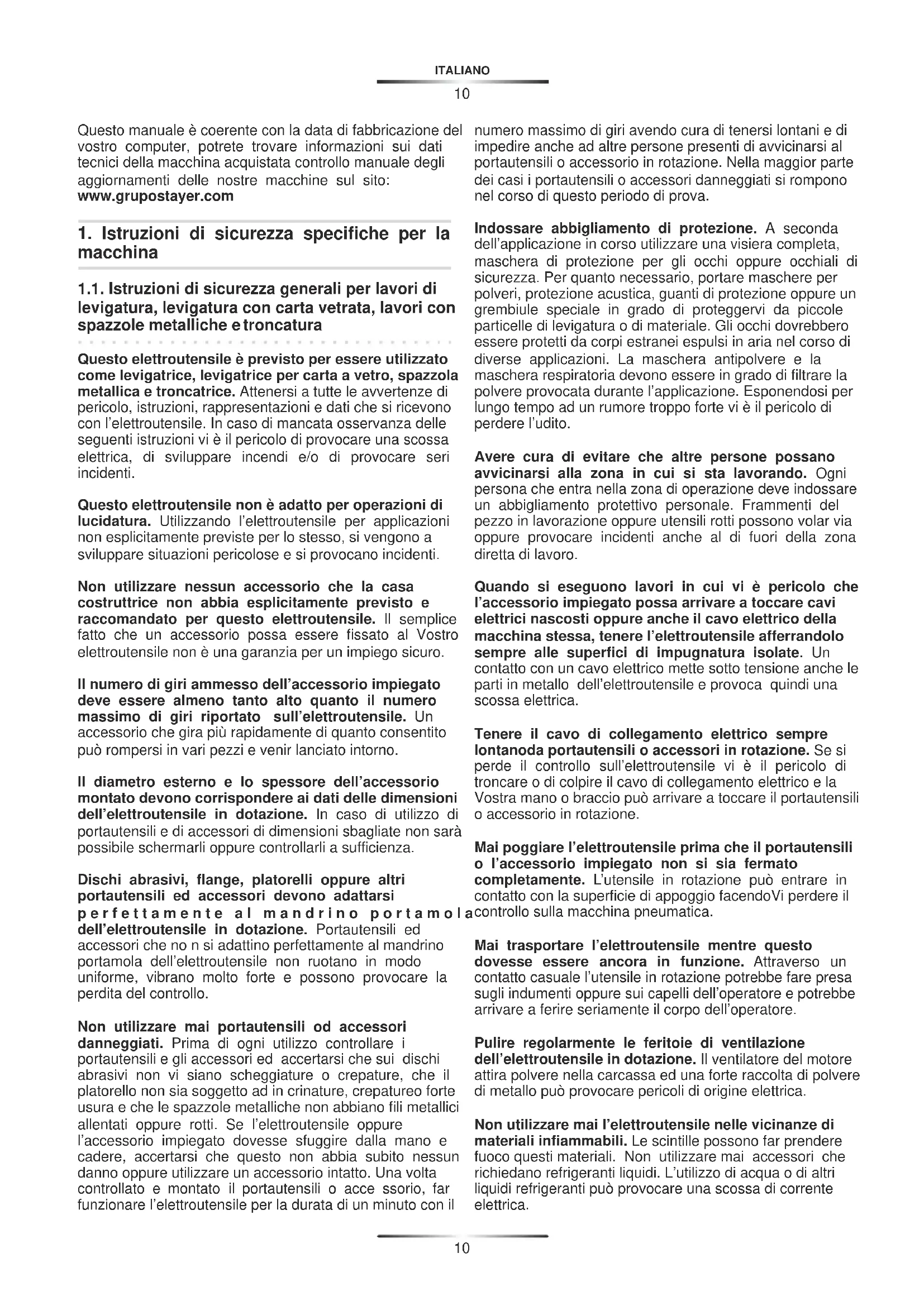1.1. Istruzioni di sicurezza generali per lavori di levigatura, levigatura con carta vetrata, lavori con spazzole metalliche e troncatura