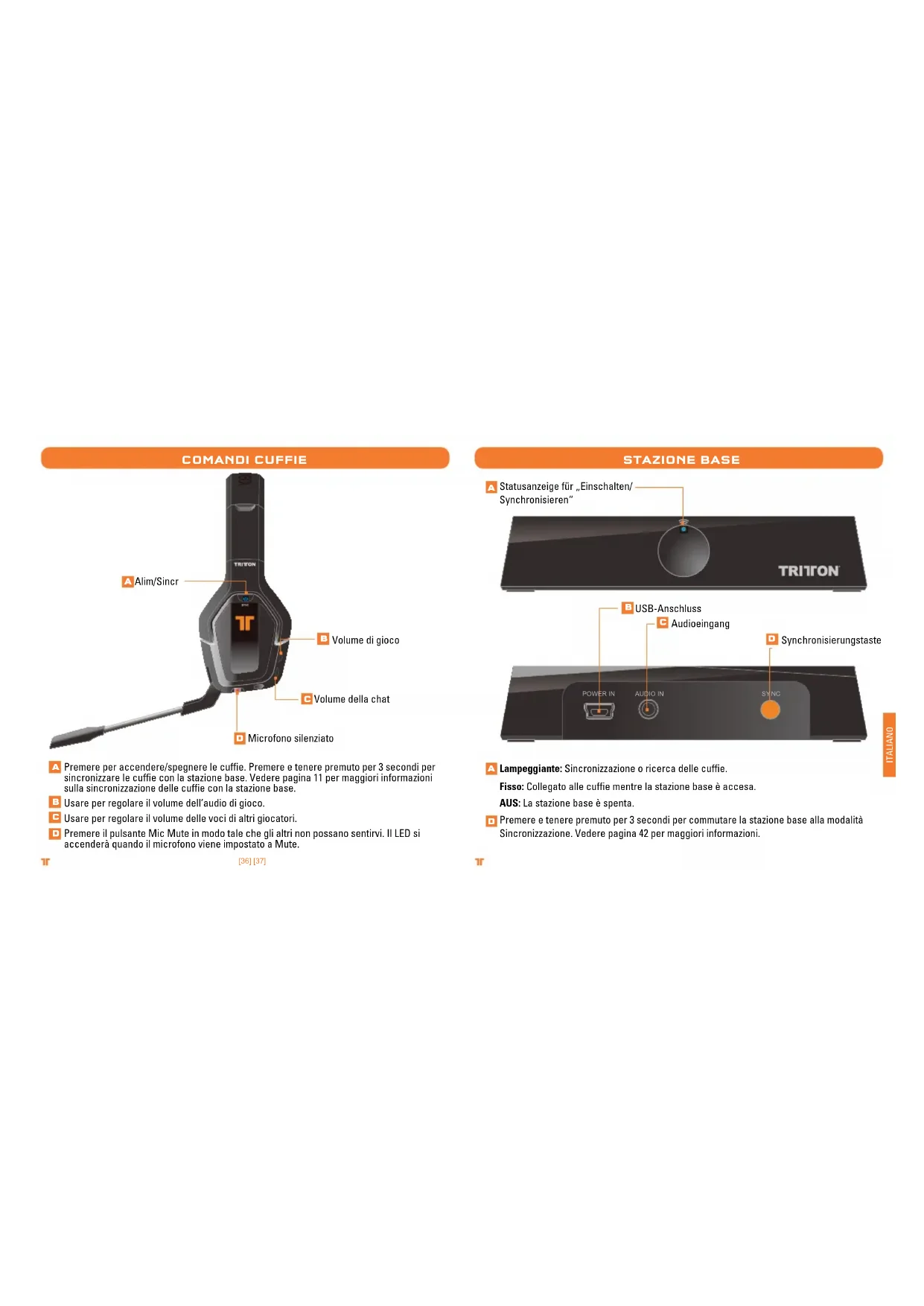 Attenzione – è possibile incorrere nella perdita permanente dell’udito se le cuffie o Gli auricolari vengono usati a volume elevato per periodi di tempo prolungati.ITALIANO [36] [37] .comTRITTONUSA.comTRITTONUSA
