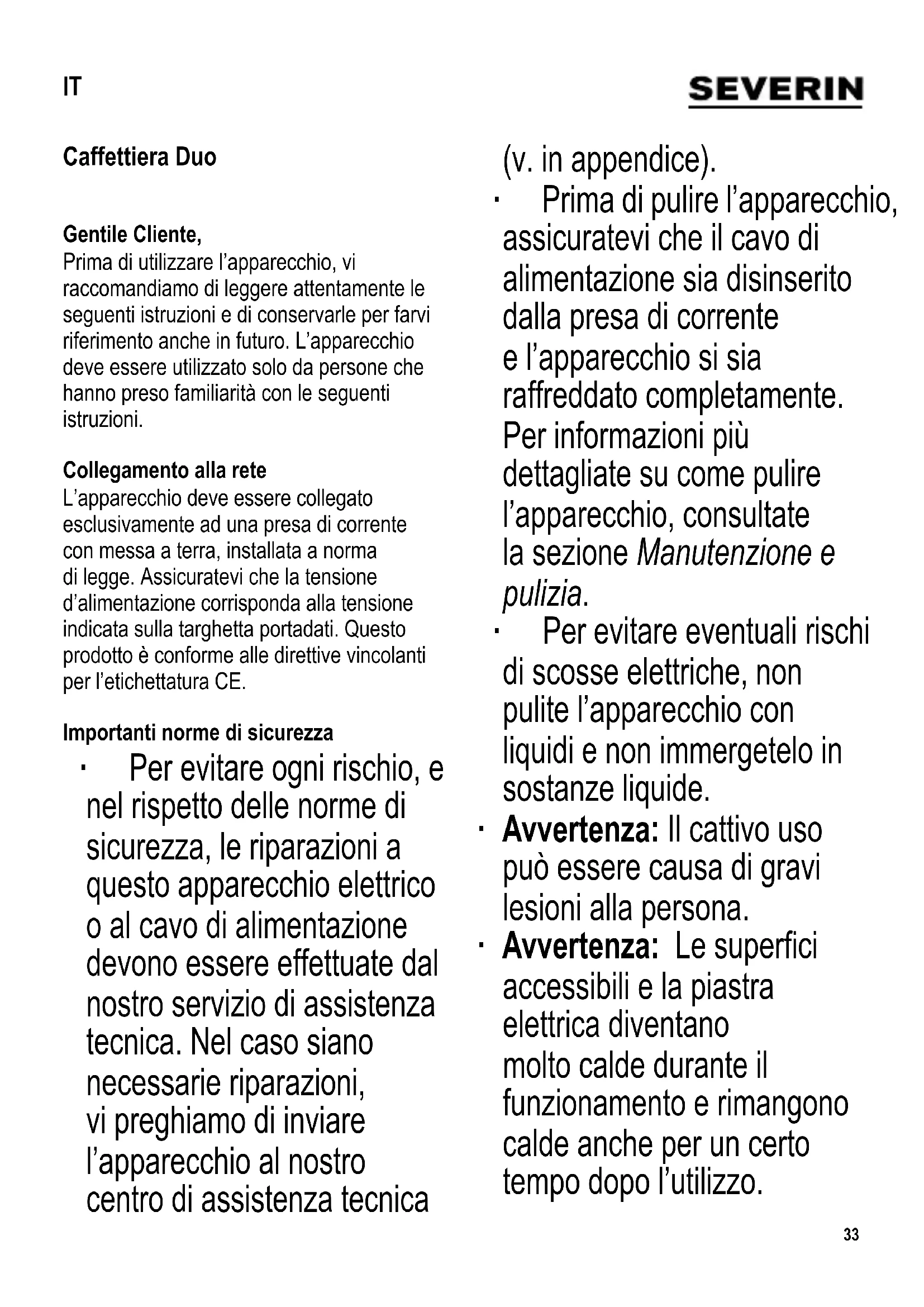 Scarica le istruzioni per il tuo Macchina da caffè in formato PDF gratuitamente! Trova il tuo manuale KA 5827 - SEVERIN e riprendi in mano il tuo dispositivo elettronico. In questa pagina sono pubblicati tutti i documenti necessari per l'utilizzo del tuo dispositivo. KA 5827 del marchio SEVERIN.