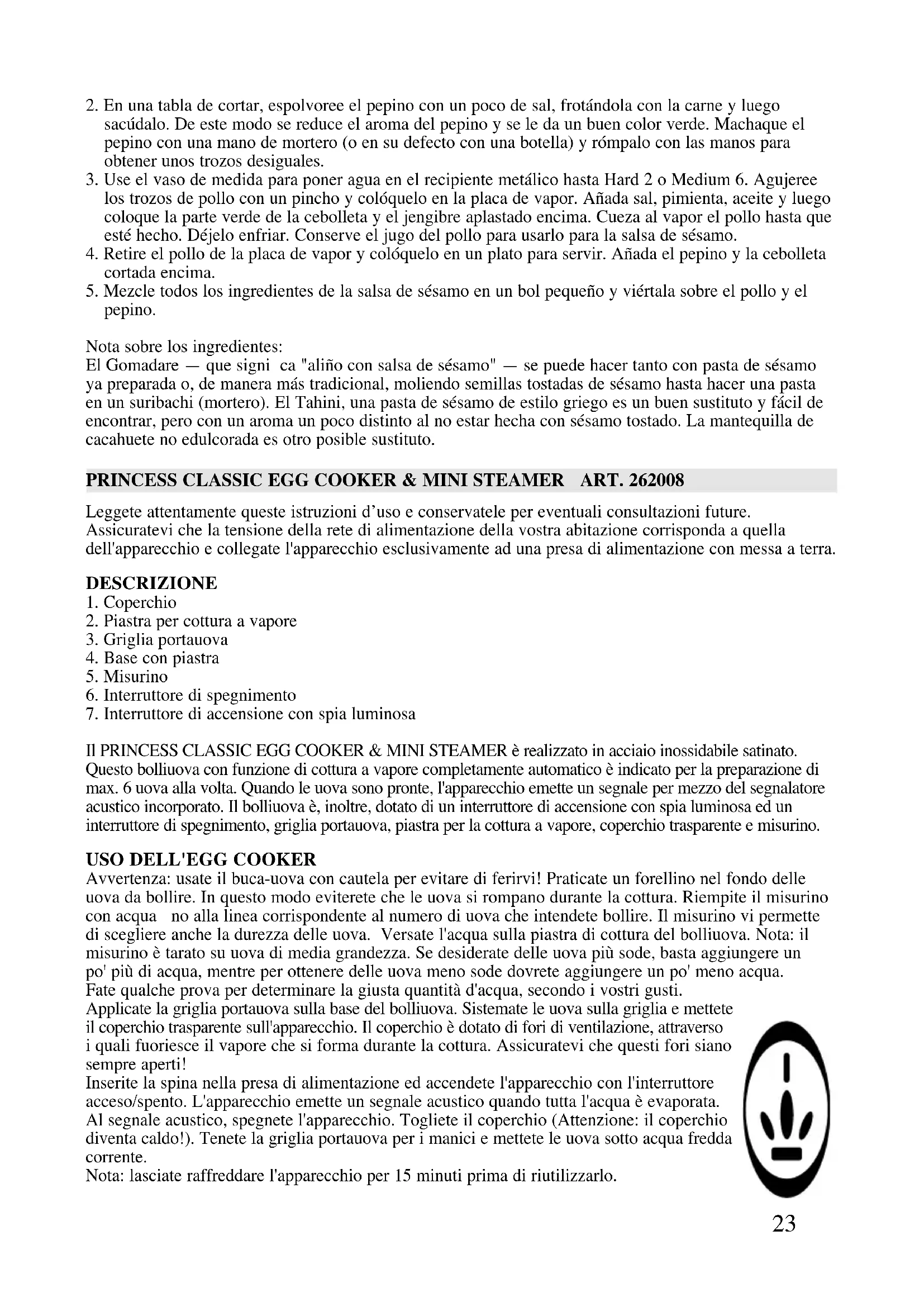 MANUALE UTENTE Classic Egg Cooker & Mini Steamer 262008 PRINCESS