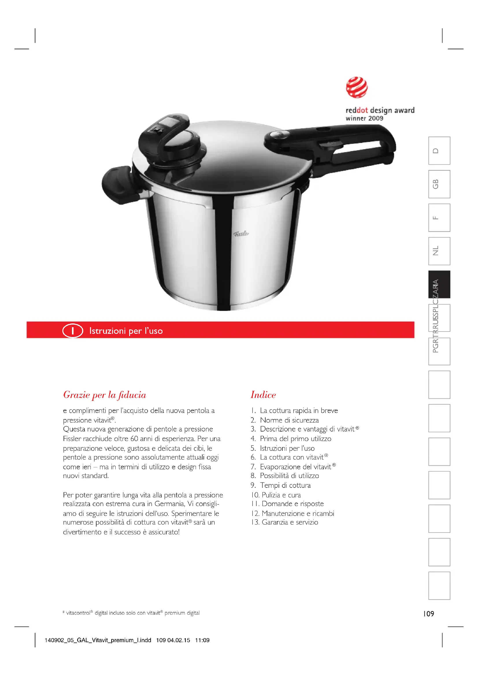 MANUALE UTENTE Vitavit Premium Fissler