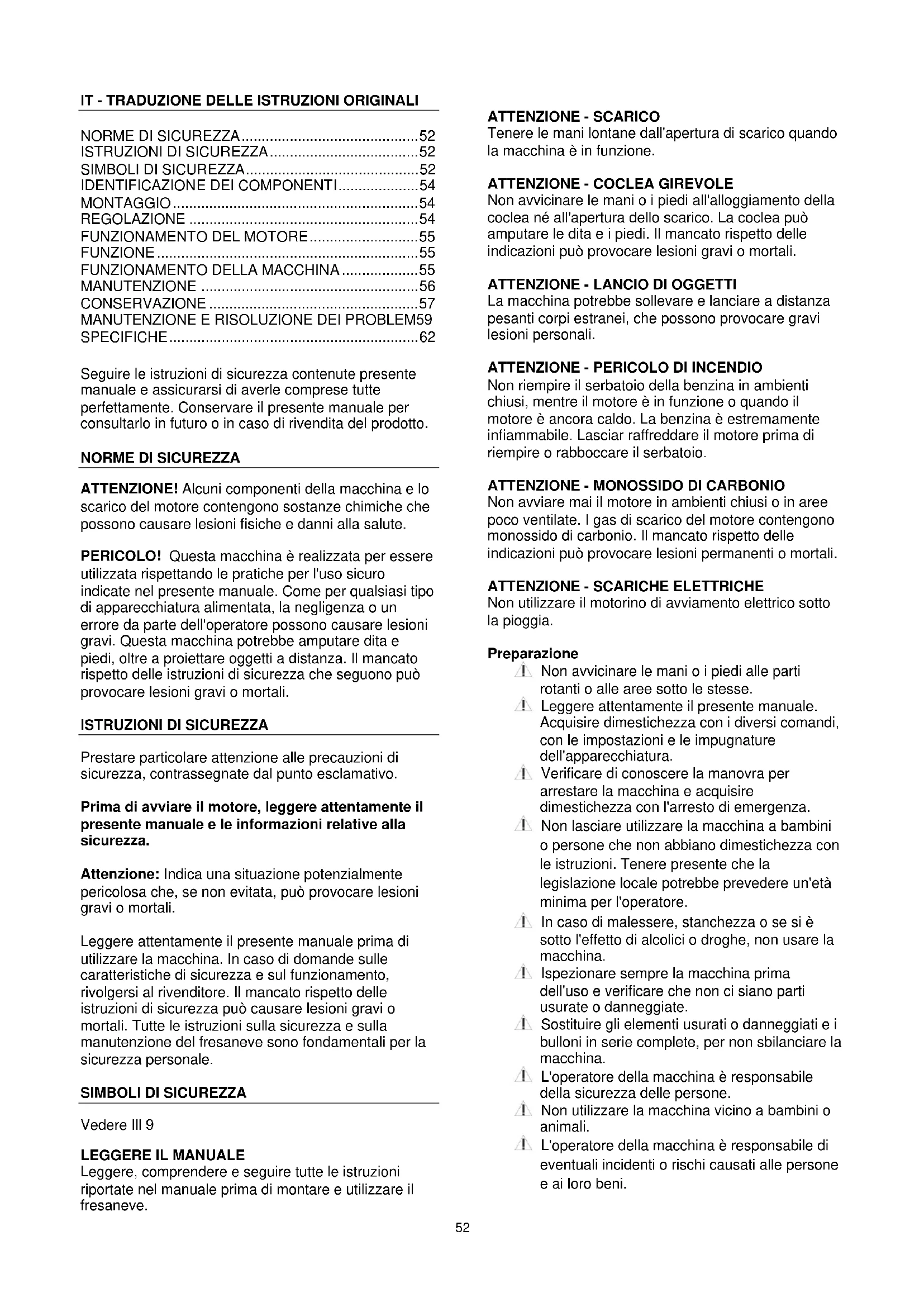 ISTRUZIONI DI SICUREZZA 52