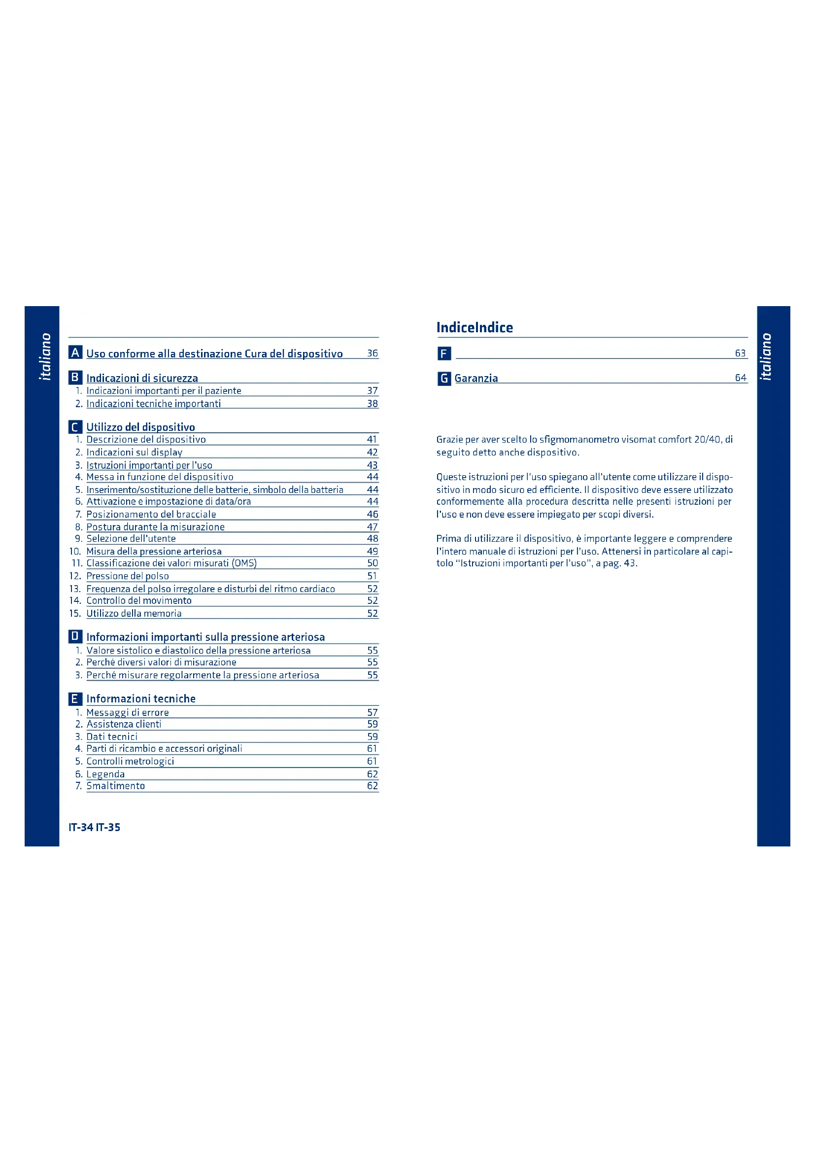 Grazie per aver scelto lo sfigmomanometro visamat comfort 20/40, di seguito dettoanche dispositivo.