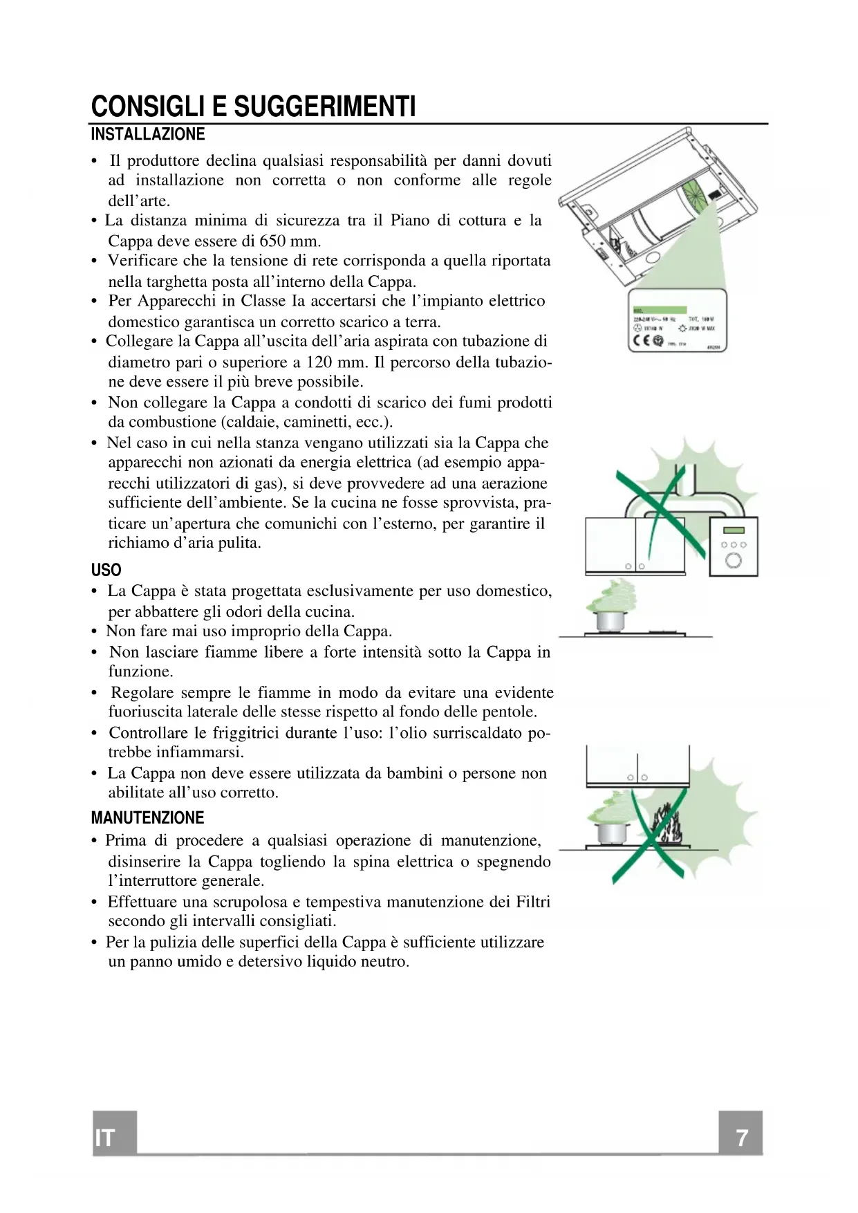 - La Cappa non deve essere utilizzata da bambini o persone non abilitate all’uso corretto. MANUTENZIONE