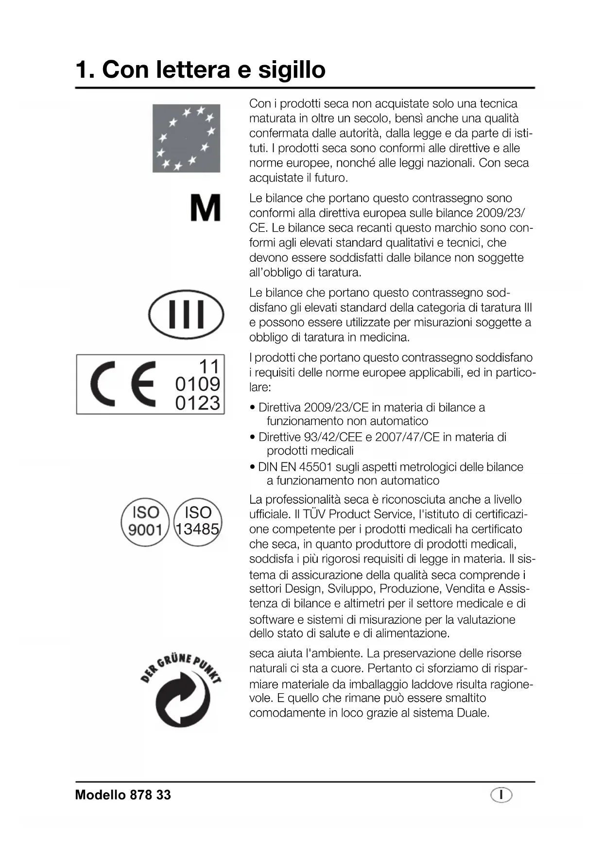Le bilance che portano questo contrassegno sono conformi alla direttiva europea sulle bilance 2009/23/CE. Le bilance seca recanti questo marchio sono conformi agli elevati standard qualitativi e tecnici, che devono essere soddisfatti dalle bilance non soggette all'obbligo di taratura.
