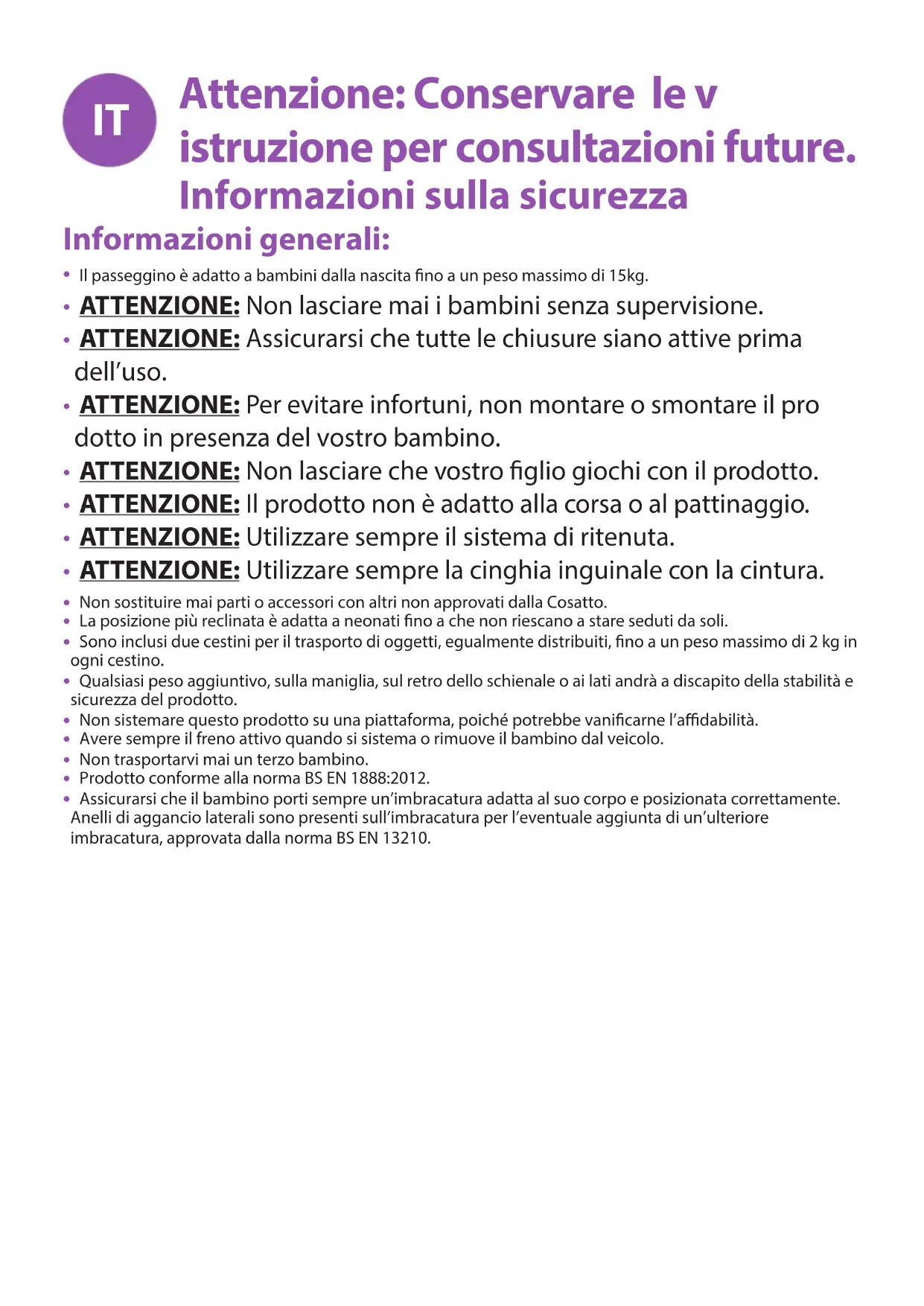 Il passeggino è stato realizzato seguendo gli standard di sicurezza, e con un uso e manutenzione corretti, vi regalerà diversi anni di ottima performance.