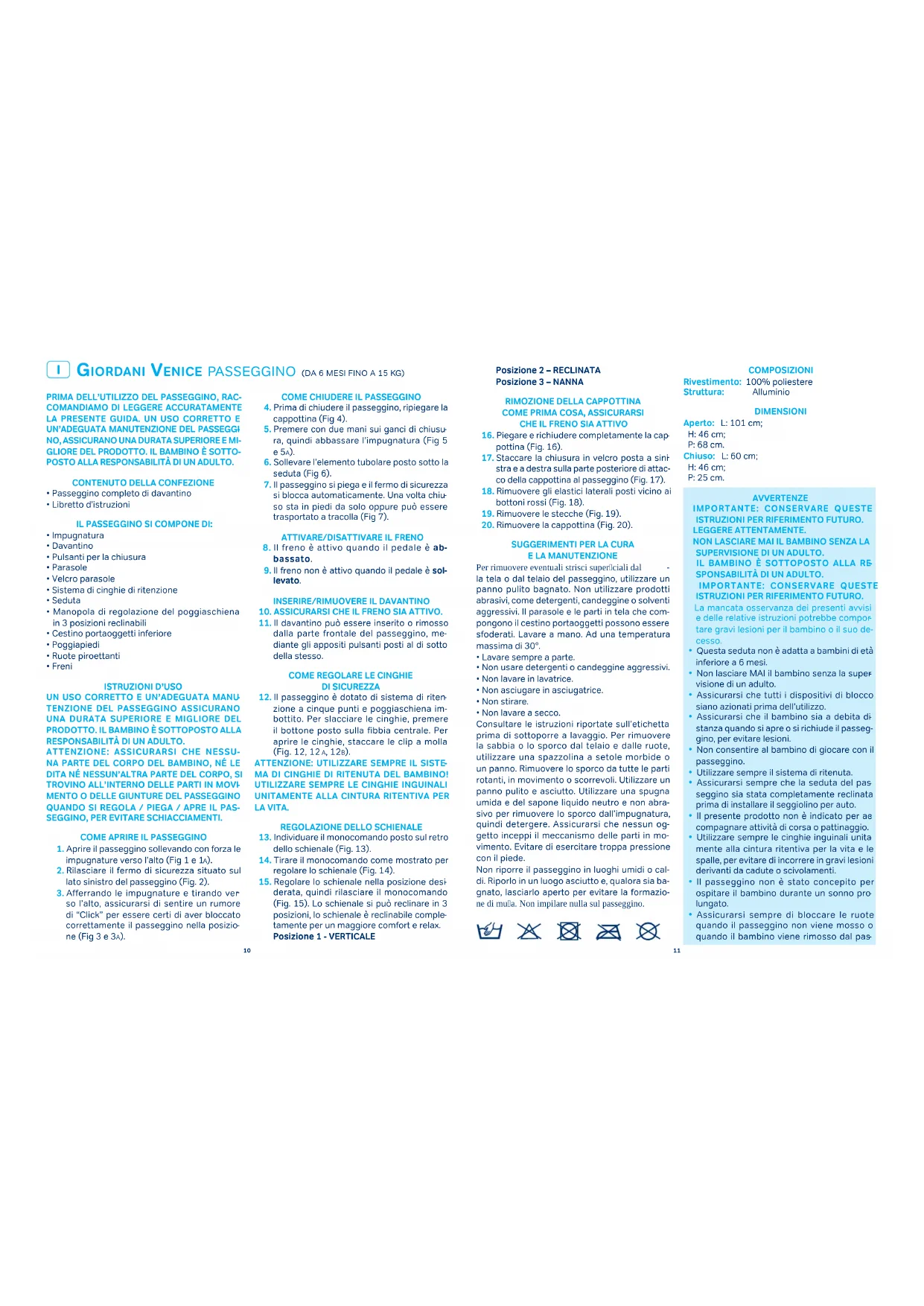 Venice - Passeggino Giordani - Manuale utente e istruzioni gratuiti