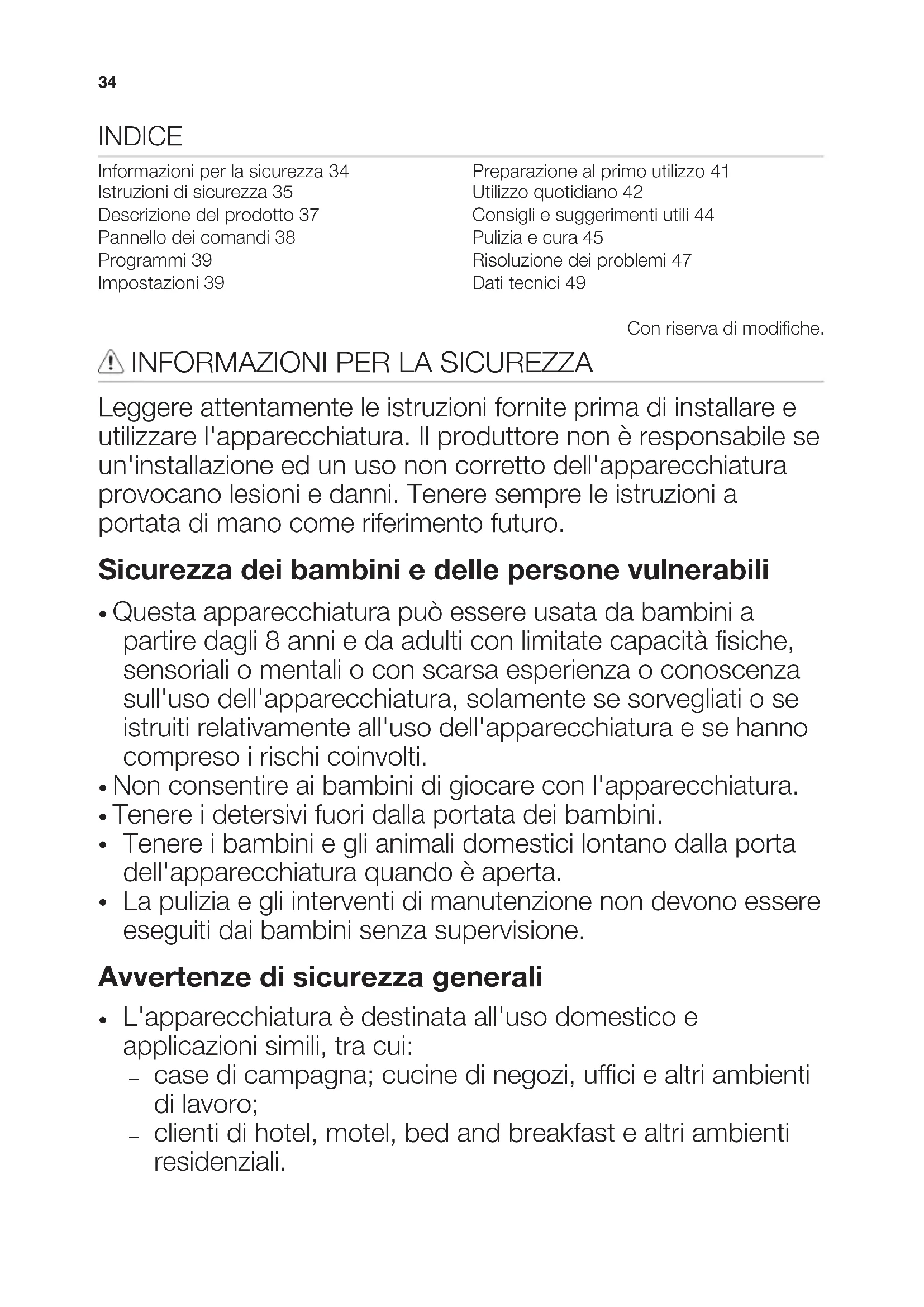 - Questa apparecchiatura può essere usata da bambini a partire dagli 8 anni e da adulti con limitate capacità fisiche, sensoriali o mentali o con scarsa esperienza o conoscenza sull'uso dell'apparecchiatura, solamente se sorvegliati o se istruiti relativamente all'uso dell'apparecchiatura e se hanno compreso i rischi coinvolti.