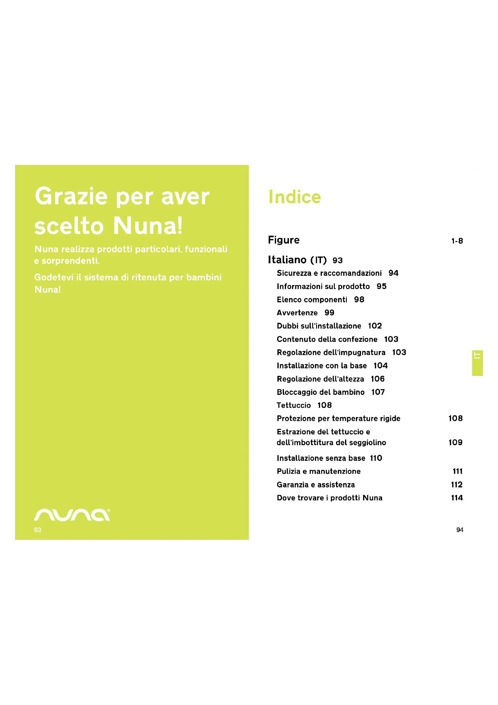 Ilsystemadi ritenutaperbambiniNuna e la base sono coperti da unanno di garanzia.Se il prodotto mostrasse un difetto nel corso del periododi garanzia,contattare il rivenditore. Se il rivenditore non è in grado di aiutarvi,contatterà il distributore Nuna locale.