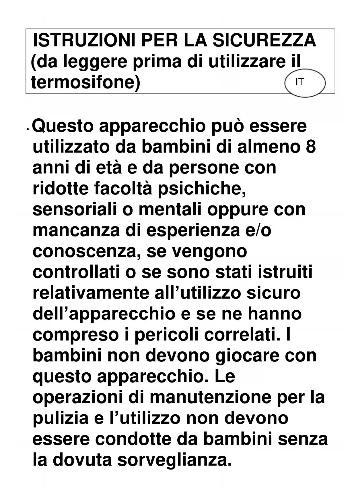 NOTA: - E 'normale quando i riscaldamenti sono accesi per la prima volta o quando sono accesi, se non fossero stati utilizzati per un lungo periodo di tempo il termosifone potrebbe emettere fumi e alcuni odore. Essi scompariranno quando il termosifone è stato accesso fra un breve tempo.