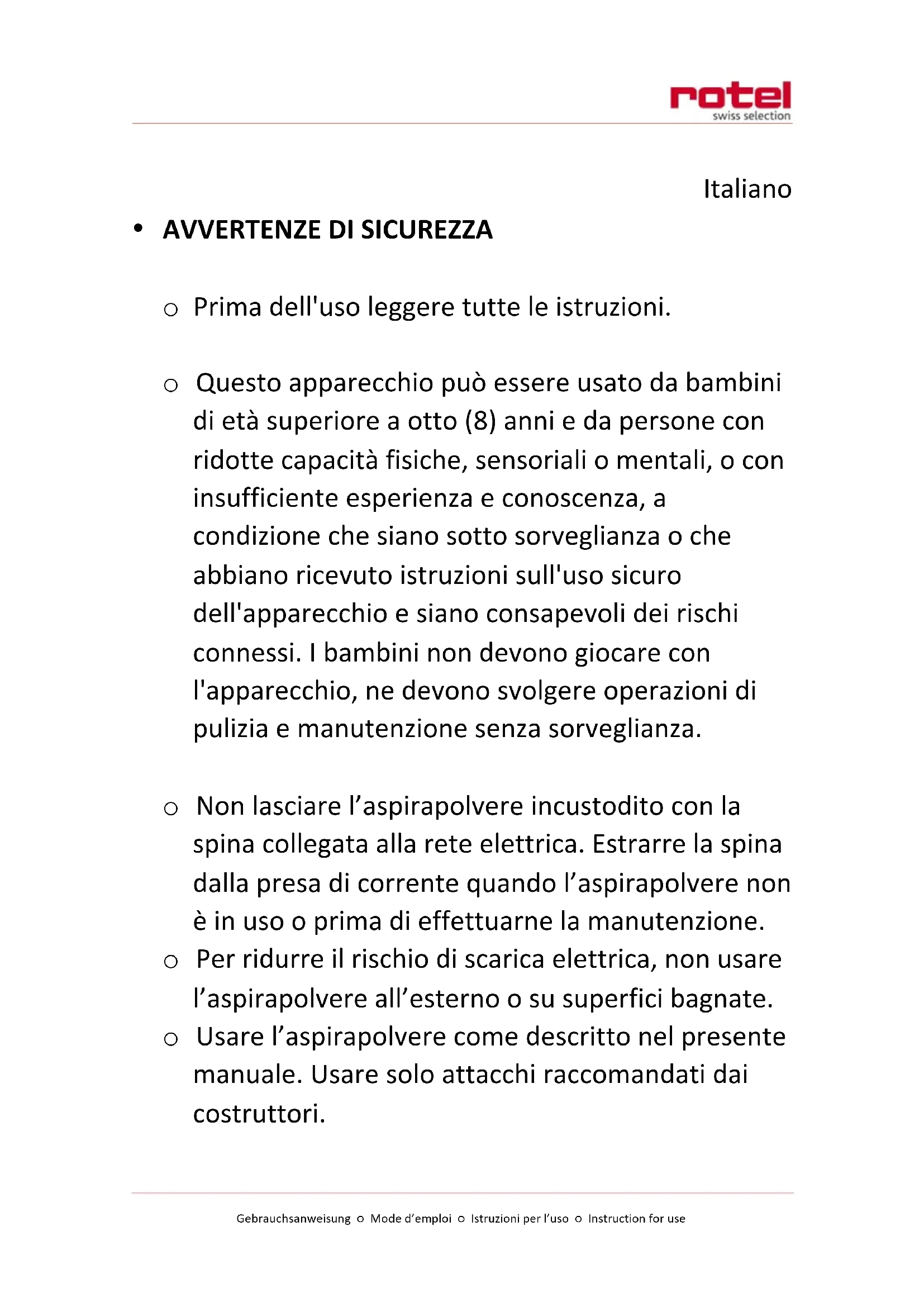Per lo smaltimento corretto, la macchina deve essere restituita al rivenditore specializzato, al servizio di assistenza o alla ditta Rotel AG.