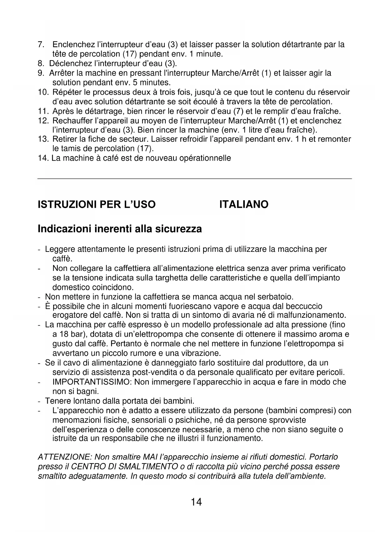 - Leggere attendamente le presenti istruzioni prima di utilizzato la macchina per caffe.