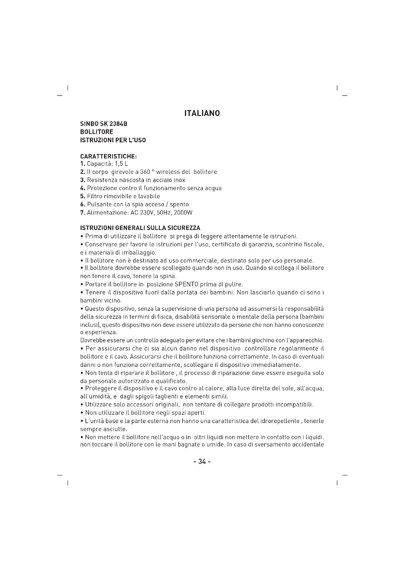 SK2384B - Bollitore SINBO - Manuale utente e istruzioni gratuiti