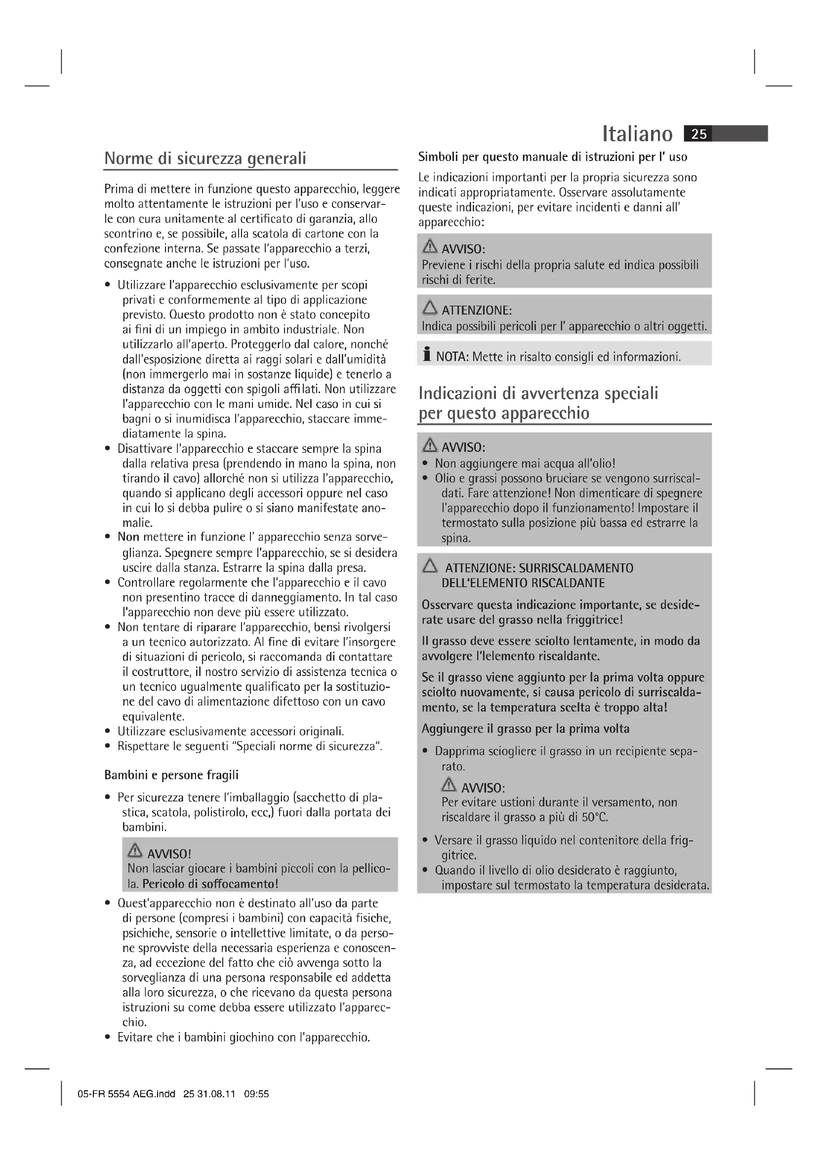FR 5554 - Friggitrice AEG - Manuale utente e istruzioni gratuiti