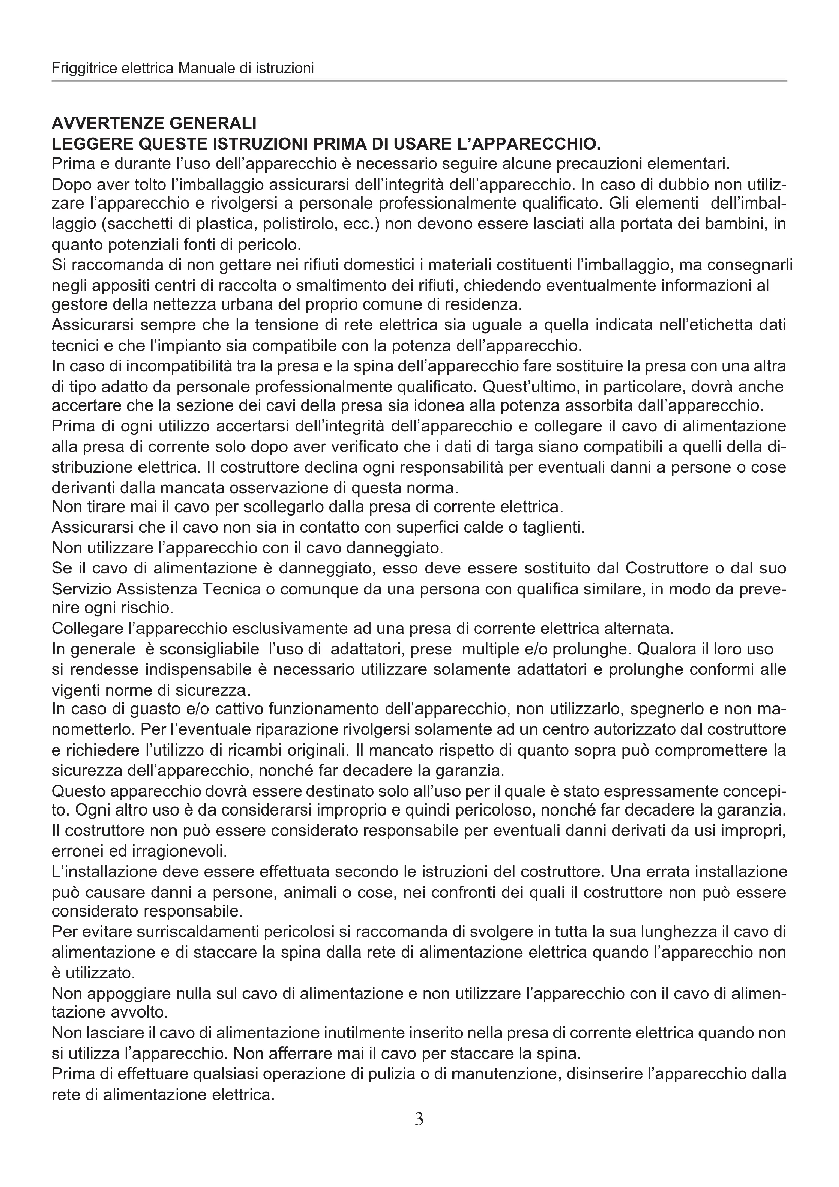 Prima di anni utilizzato accertarsi dell'integrità dell'apparecchio e collegare il cavo di alimentazione alla presa di corrente solo dopo aver verificato che i dati di targa siano compatibili a quelli della distribuzione elettrica. Il costruttore declina anni responsabilità per eventuali danni a persono o cose derivanti alla mancata osservazione di但这a norma.