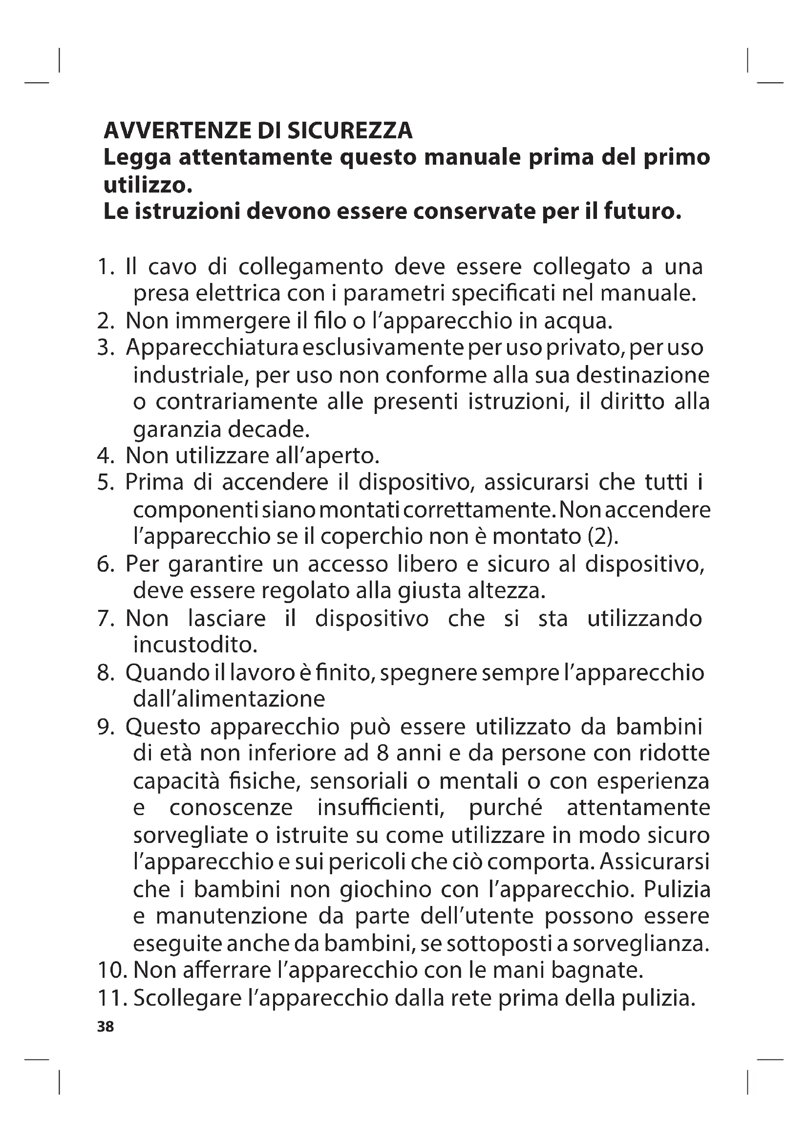 Legga attentamente questo manuale prima del primo utilizzo. Le istruzioni devono essere conservate per il futuro.