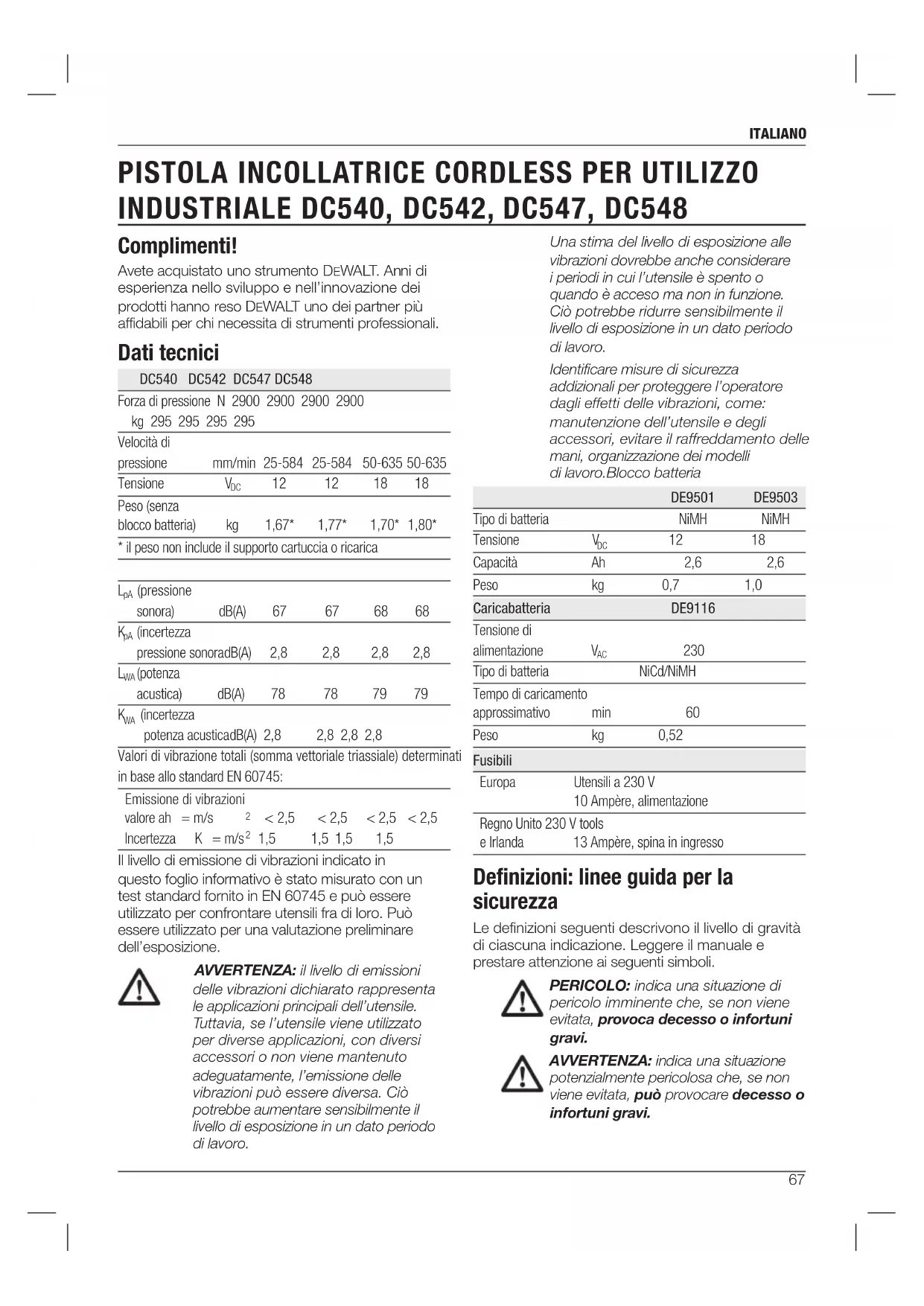 MANUALE UTENTE DC548 DEWALT