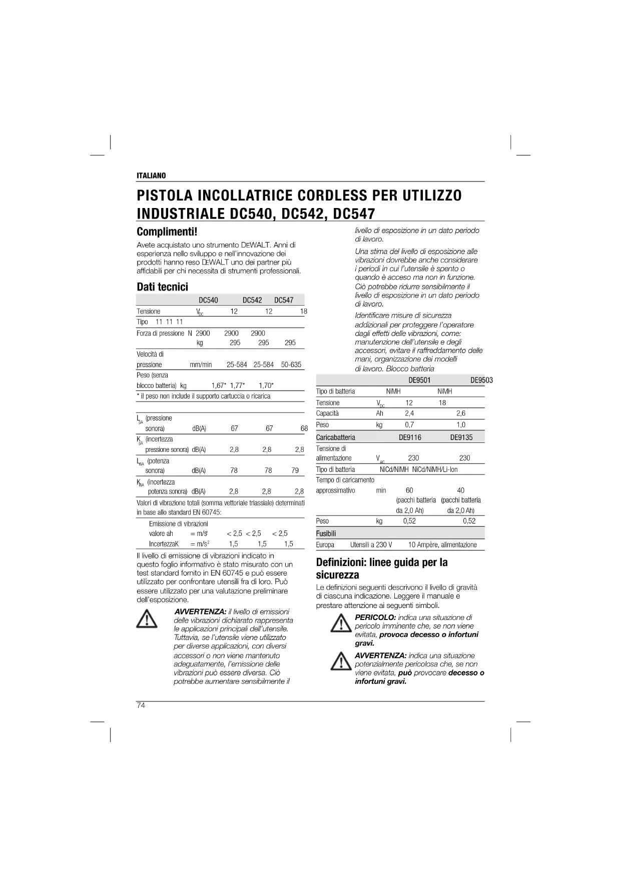 Trova gratuitamente il manuale del dispositivo DC542 DEWALT in formato PDF.