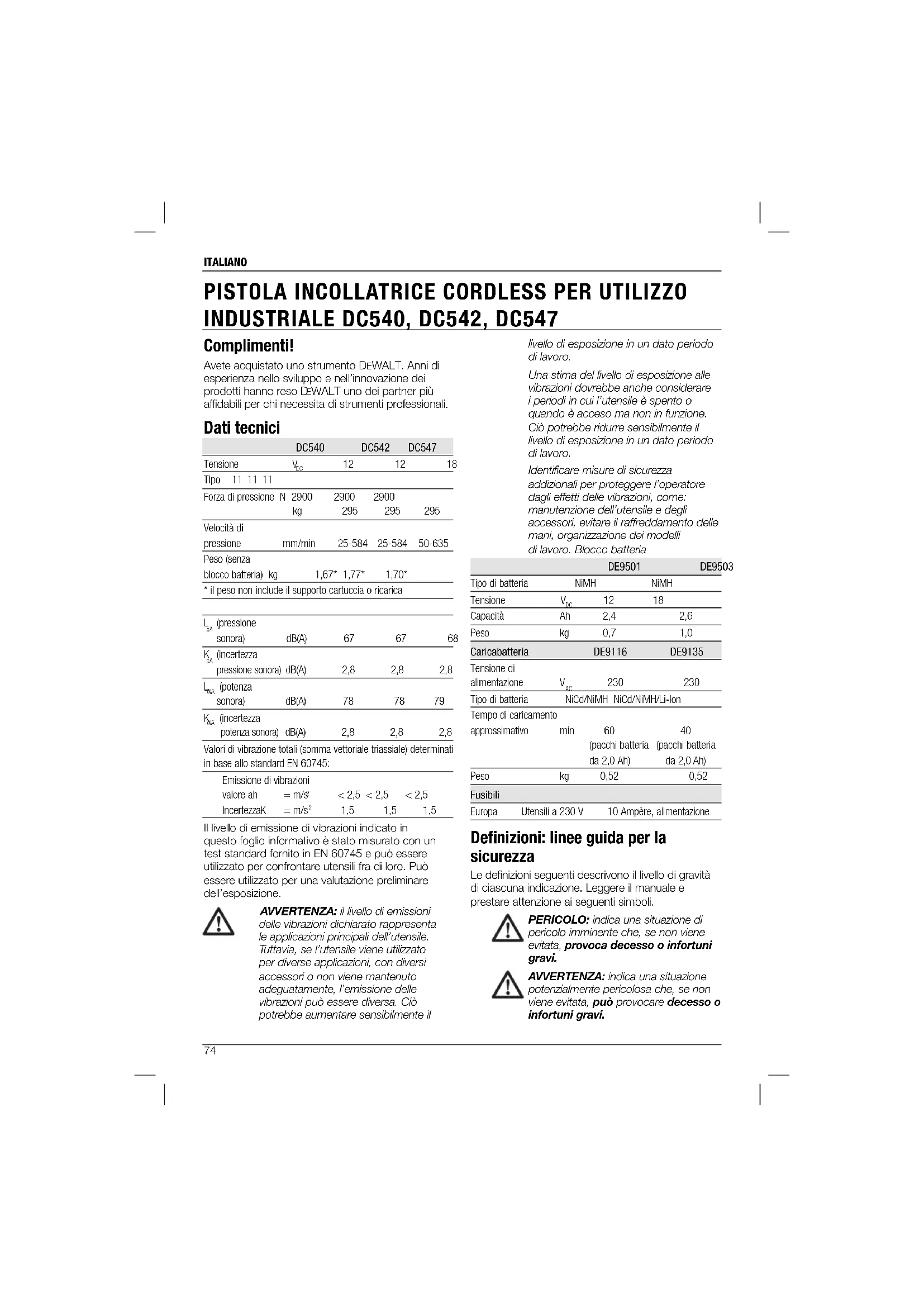 Scarica le istruzioni per il tuo Pistola per colla in formato PDF gratuitamente! Trova il tuo manuale DC540 - DEWALT e riprendi in mano il tuo dispositivo elettronico. In questa pagina sono pubblicati tutti i documenti necessari per l'utilizzo del tuo dispositivo. DC540 del marchio DEWALT.