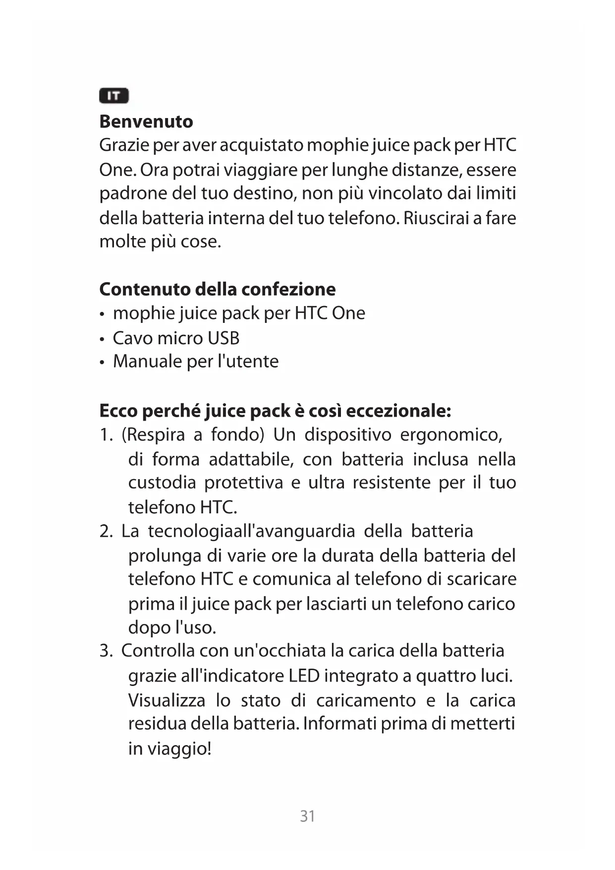 Grazie per aver acquistato morphie juice pack per HTC One. Ora potrai viaggiare per lunghe distance, essere padrone del tuo destinio, non più vincolato dai limiti della batteria interna del tuo Telefono. Riuscirai a fare molto più cose.