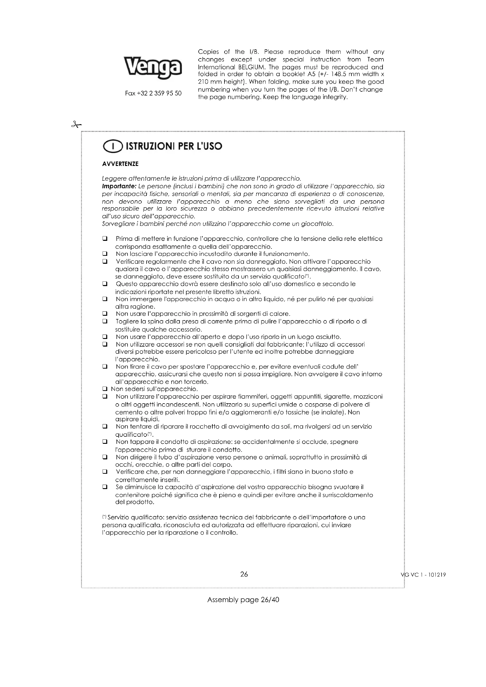 VG VC 1 - Aspirapolvere Venga - Manuale utente e istruzioni gratuiti