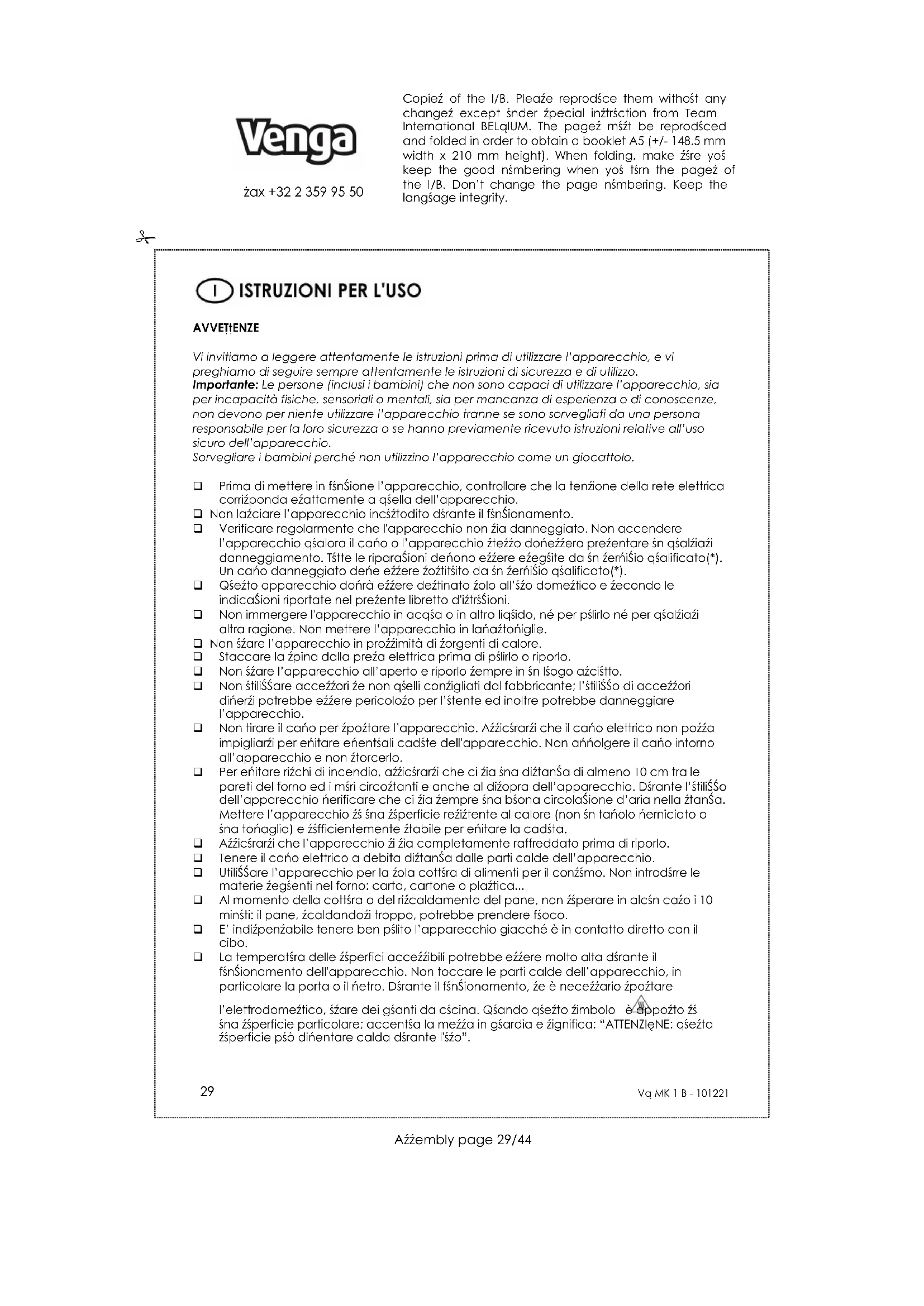 MANUALE UTENTE VG MK 1 B Venga