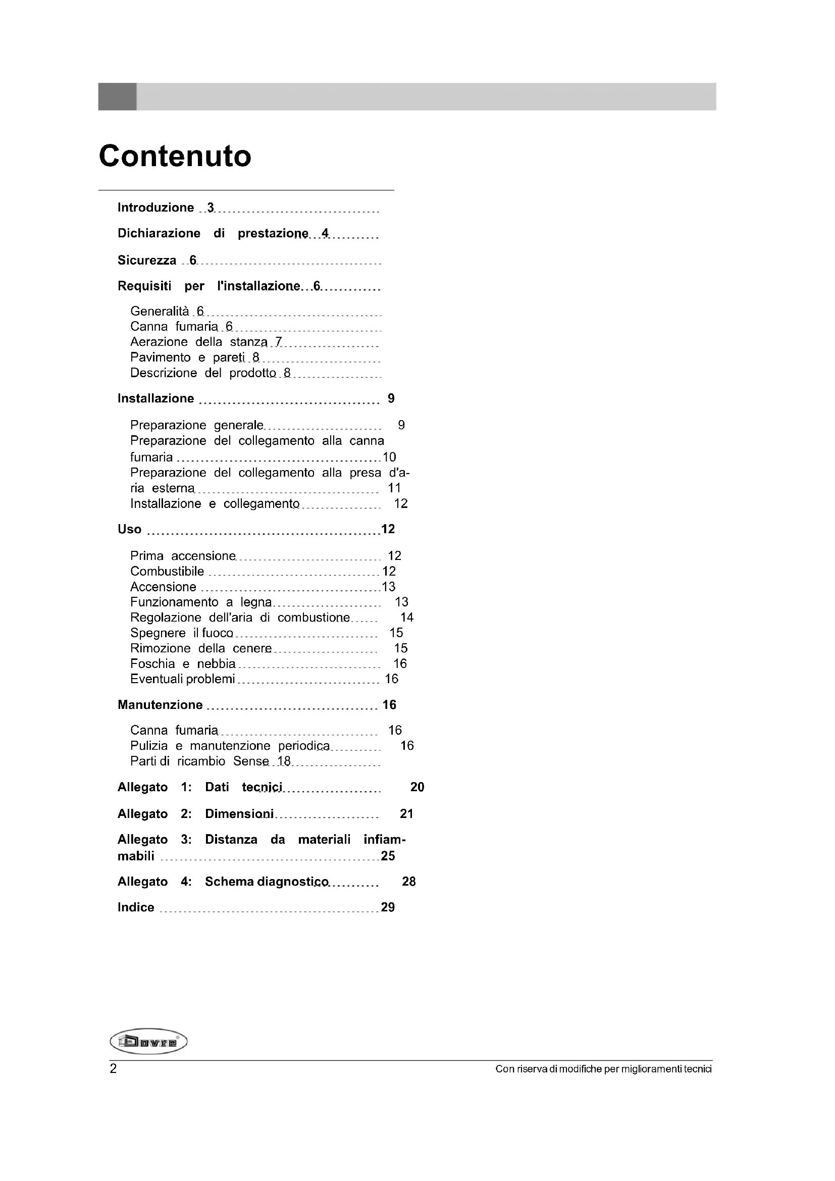 Questo manuale contiene tutte le istruzioni per l'in-stallazione, l'uso e la manutenzione dell'apparecchio da riscaldamento DOVRE. Se desidera ricevere informazioni o dati tecnici aggiuntivi, Le consiglio di contattare in un primo momento il fornitore dell'apparecchio.