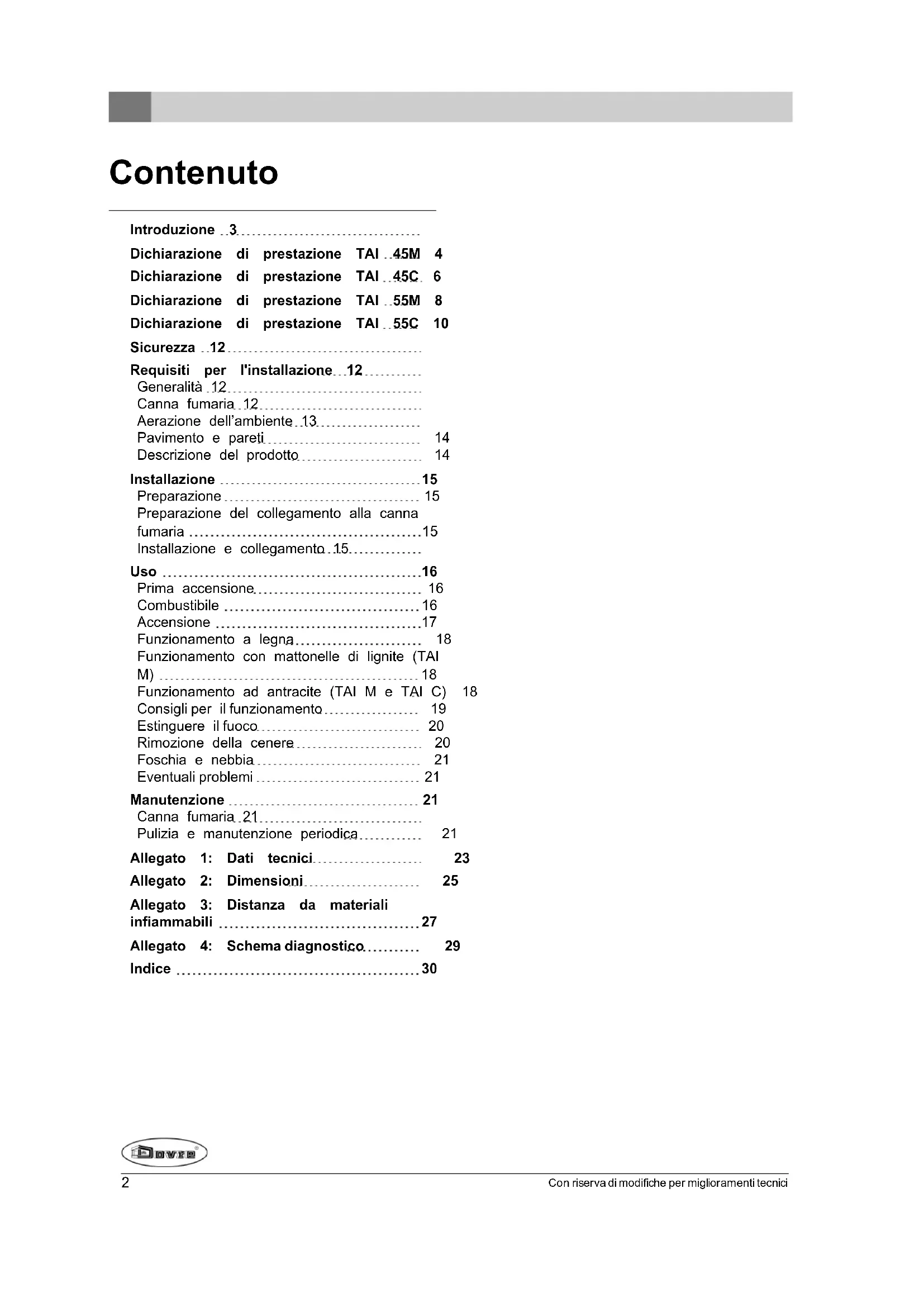 Questo manuale contiene tutte le istruzioni per l'installazione, l'uso e la manutenzione dell'apparecchio da riscaldamento DOVRE. Se desidera ricevere informazioni o dati tecnici aggiuntivi, Le consigliamo di contattare in un primo momento il fornitore dell'apparecchio.