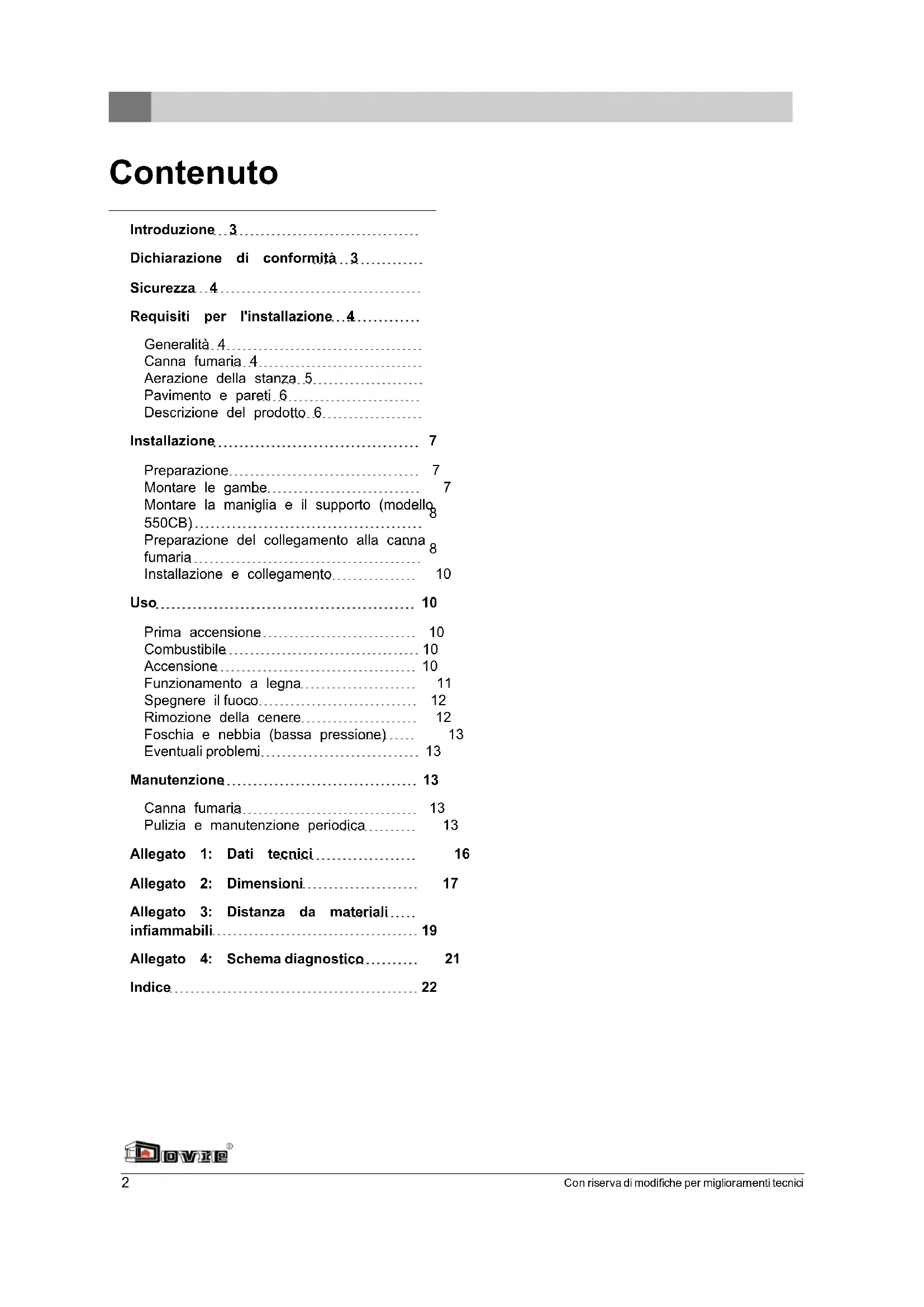 Questo manuale contiene tutte le istruzioni per l'installazione, l'uso e la manutenzione dell'apparecchio da riscaldamento DOVRE. Se desidera ricevere informazioni o dati tecnici aggiuntivi, Le consigliamo di contattare in un primo momento il fornitore dell'apparecchio.