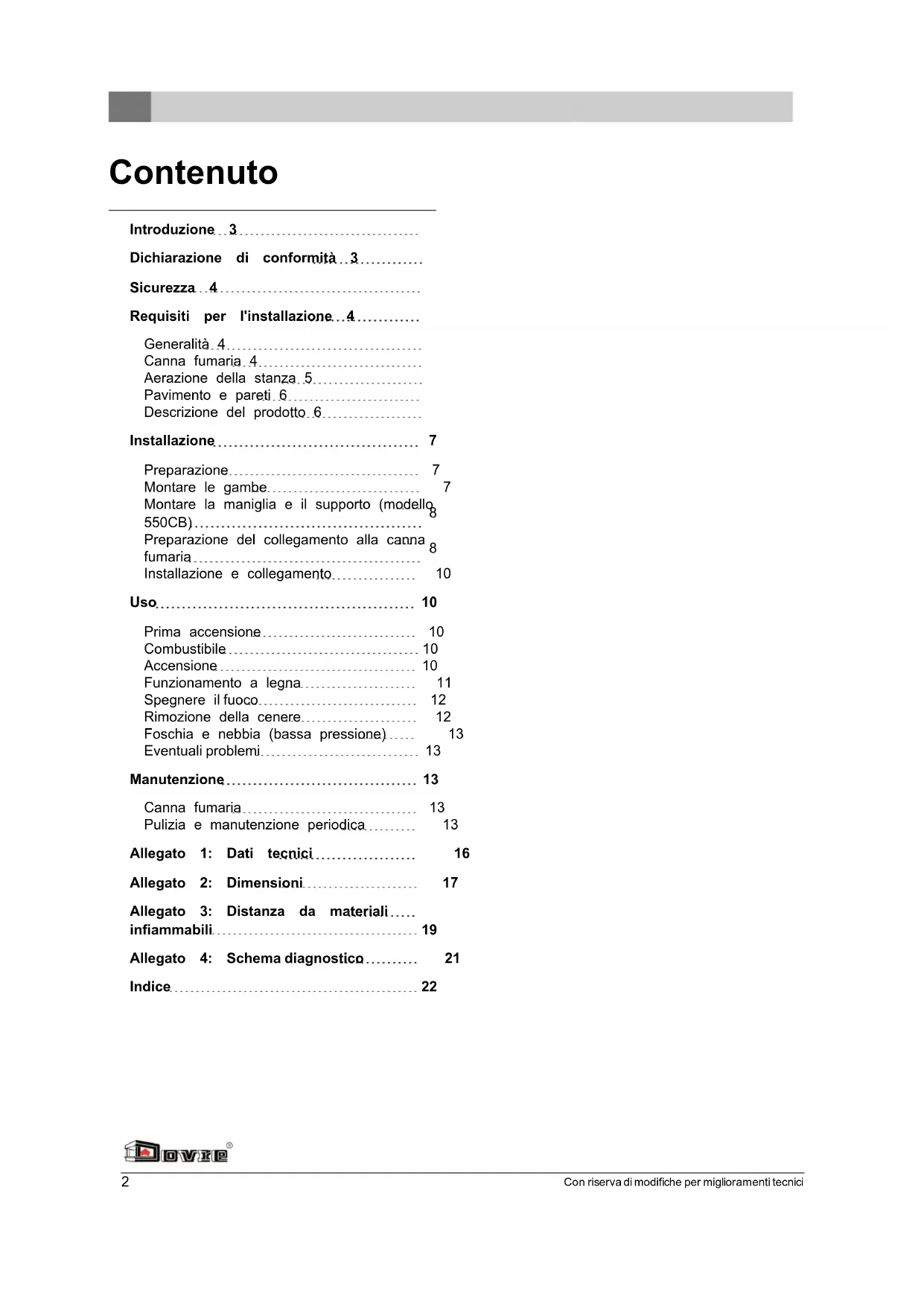 Questo manuale contiene tutte le istruzioni per l'installazione, l'uso e la manutenzione dell'apparecchio da riscaldamento DOVRE. Se desidera ricevere informazioni o dati tecnici aggiuntivi, Le consigliamo di contattare in un primo momento il fornitore dell'apparecchio.