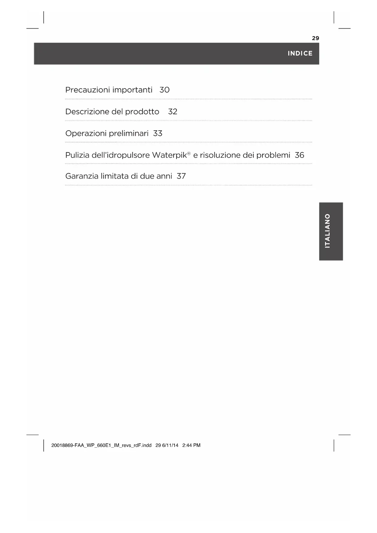 MANUALE UTENTE WP660 Waterpik