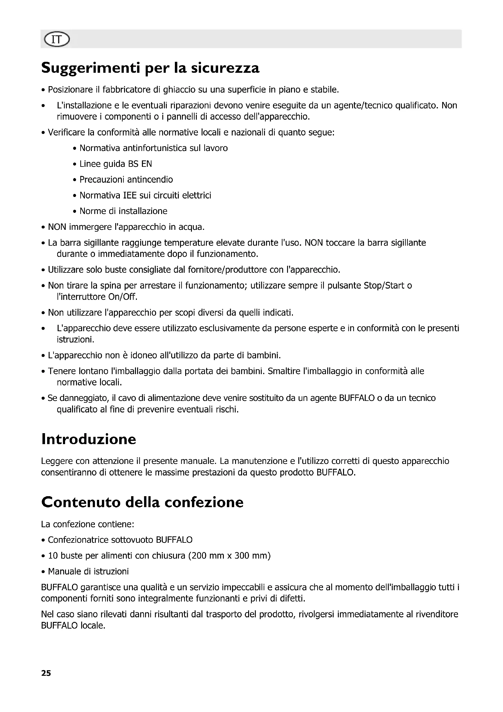 CC771 - Macchine per confezionamento sottovuoto BUFFALO - Manuale utente e istruzioni gratuiti
