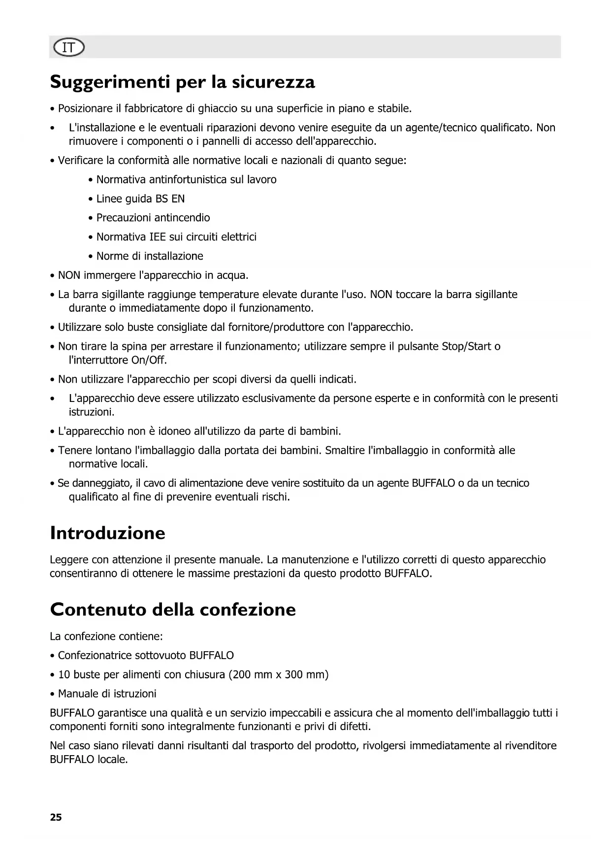 CC770 - Macchine per confezionamento sottovuoto BUFFALO - Manuale utente e istruzioni gratuiti