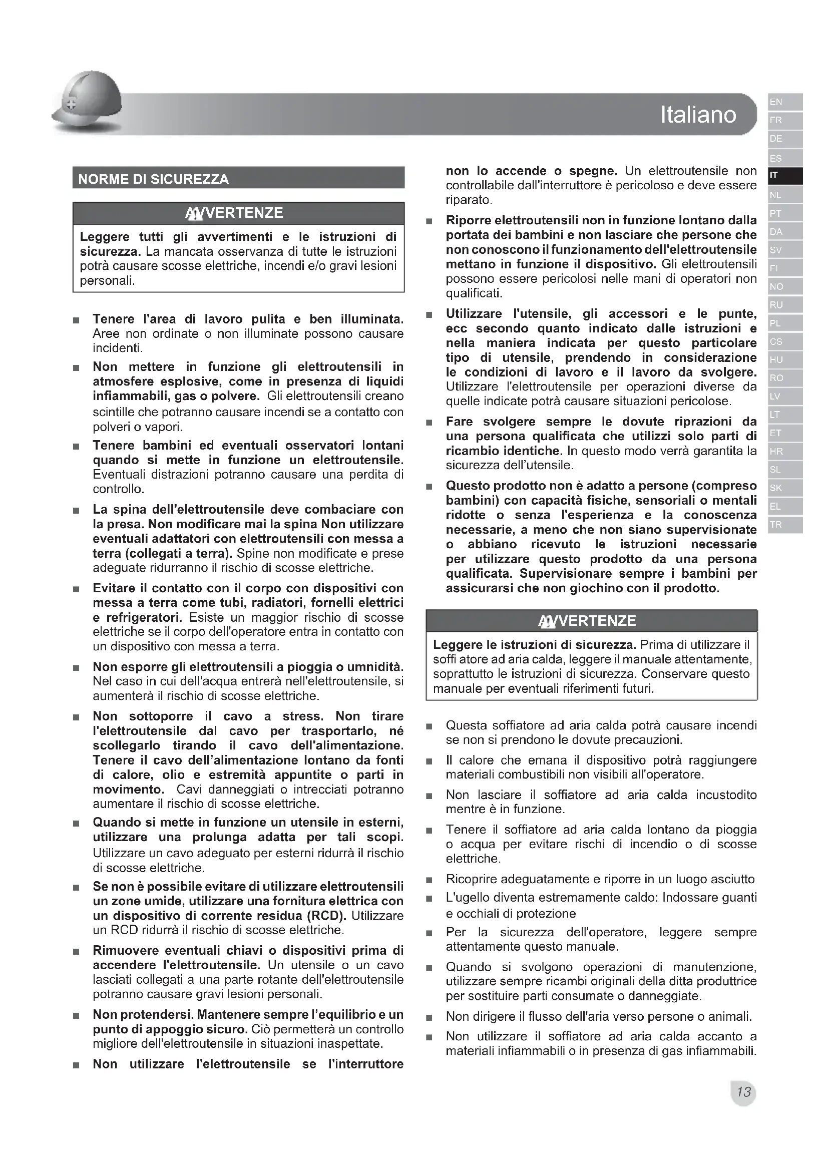 Leggere le istruzioni di sicurezza. Prima di utilizzare il soffi atore ad aria calda, leggere il manuale attendamente, soprattutto le istruzioni di sicurezza. Conservare questo manuale per eventuali riferimenti futuri.