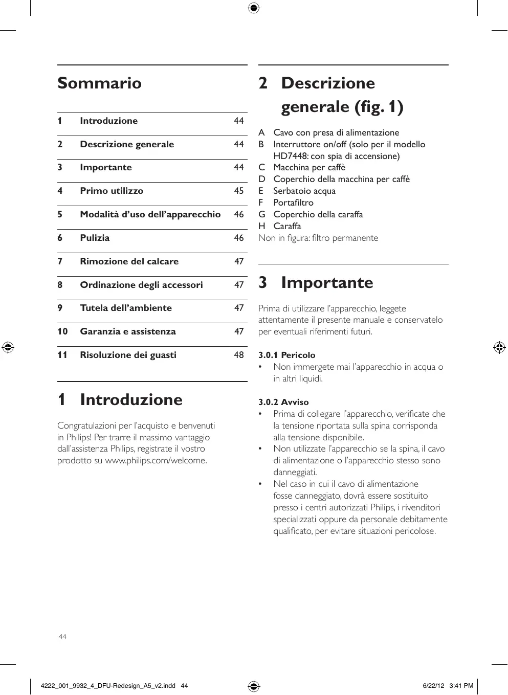 Scarica le istruzioni per il tuo Macchina da caffè in formato PDF gratuitamente! Trova il tuo manuale HD7448/10 - PHILIPS e riprendi in mano il tuo dispositivo elettronico. In questa pagina sono pubblicati tutti i documenti necessari per l'utilizzo del tuo dispositivo. HD7448/10 del marchio PHILIPS.