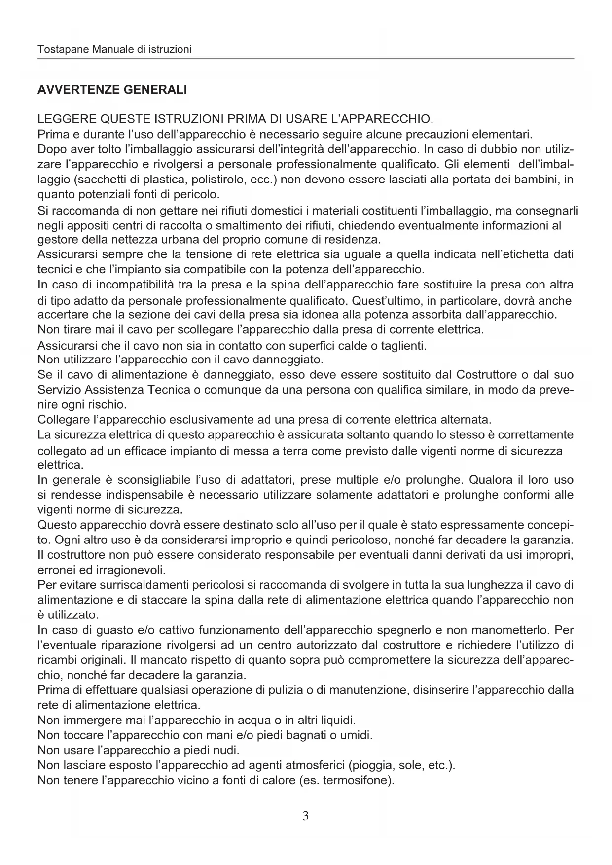 TOSTAPANE - MANUALE DI STRUZIONI