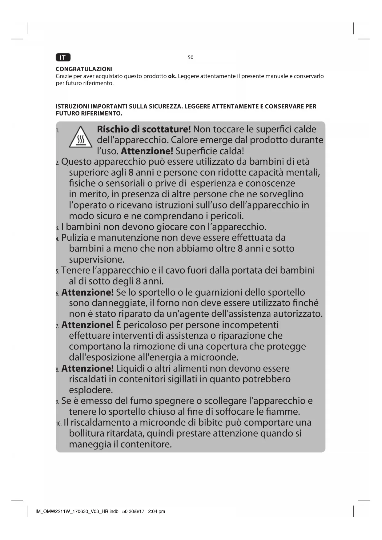 bollitura ritardata, quindi prestare attenzione quando si maneggia il contenitore. IM_OMW2211W_170630_V03_HR.indb 50 30/6/17 2:04 pm51