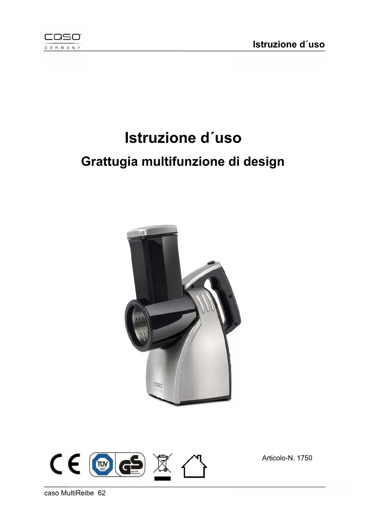 01750 - Grattugia elettrica CASO - Manuale utente e istruzioni gratuiti