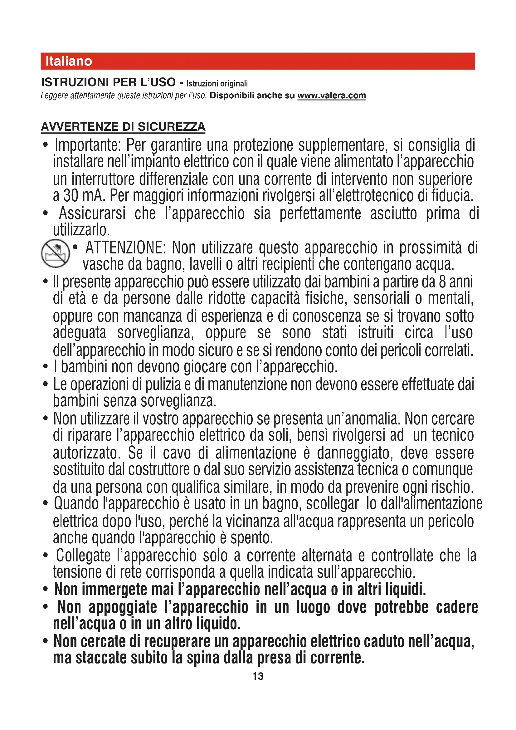 Istruzioni originali Leggere attentamente queste istruzioni per l’uso. Disponibili anche su www.valera.com