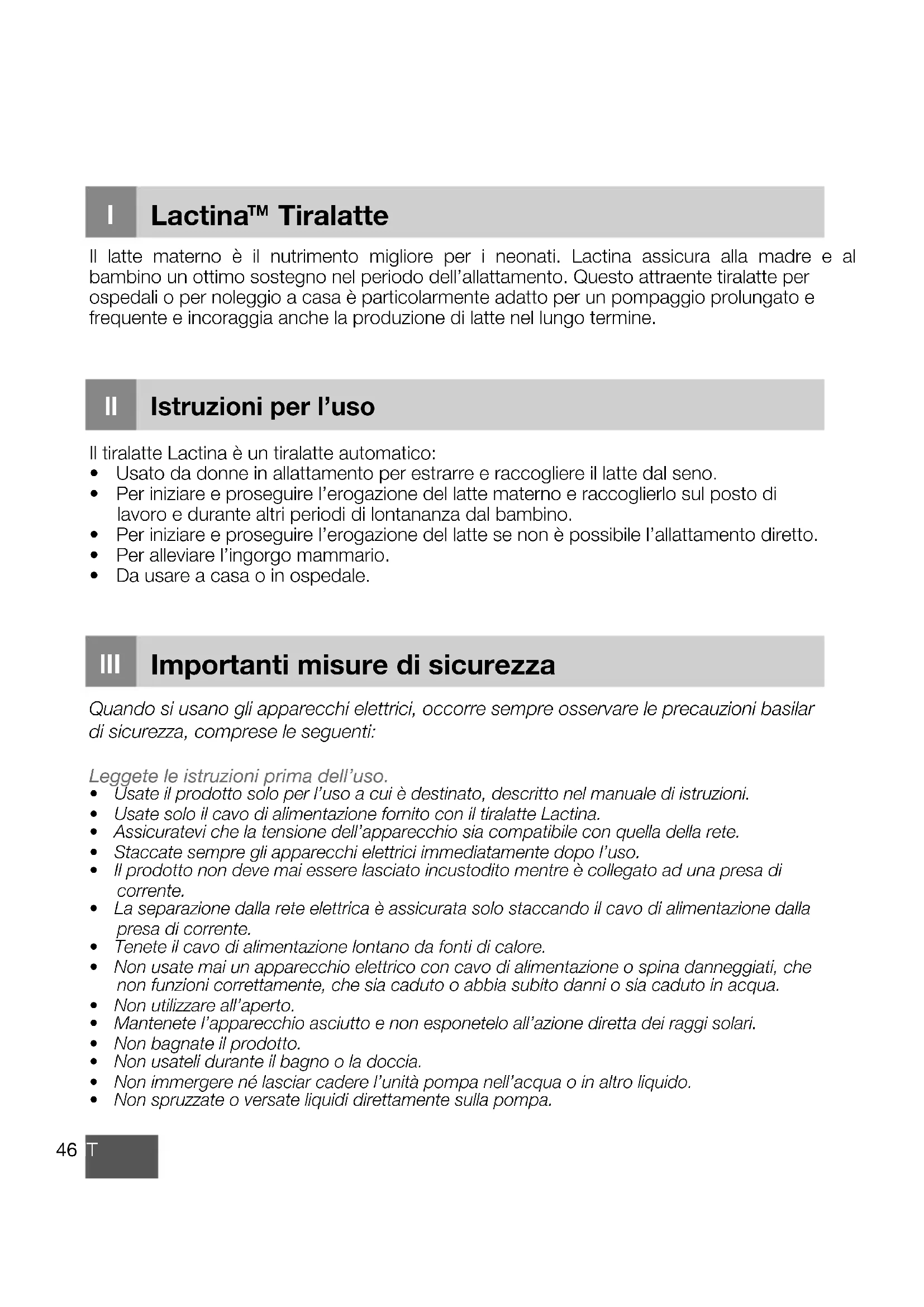 o46 IT Importanti misure di sicurezza lII Lactina