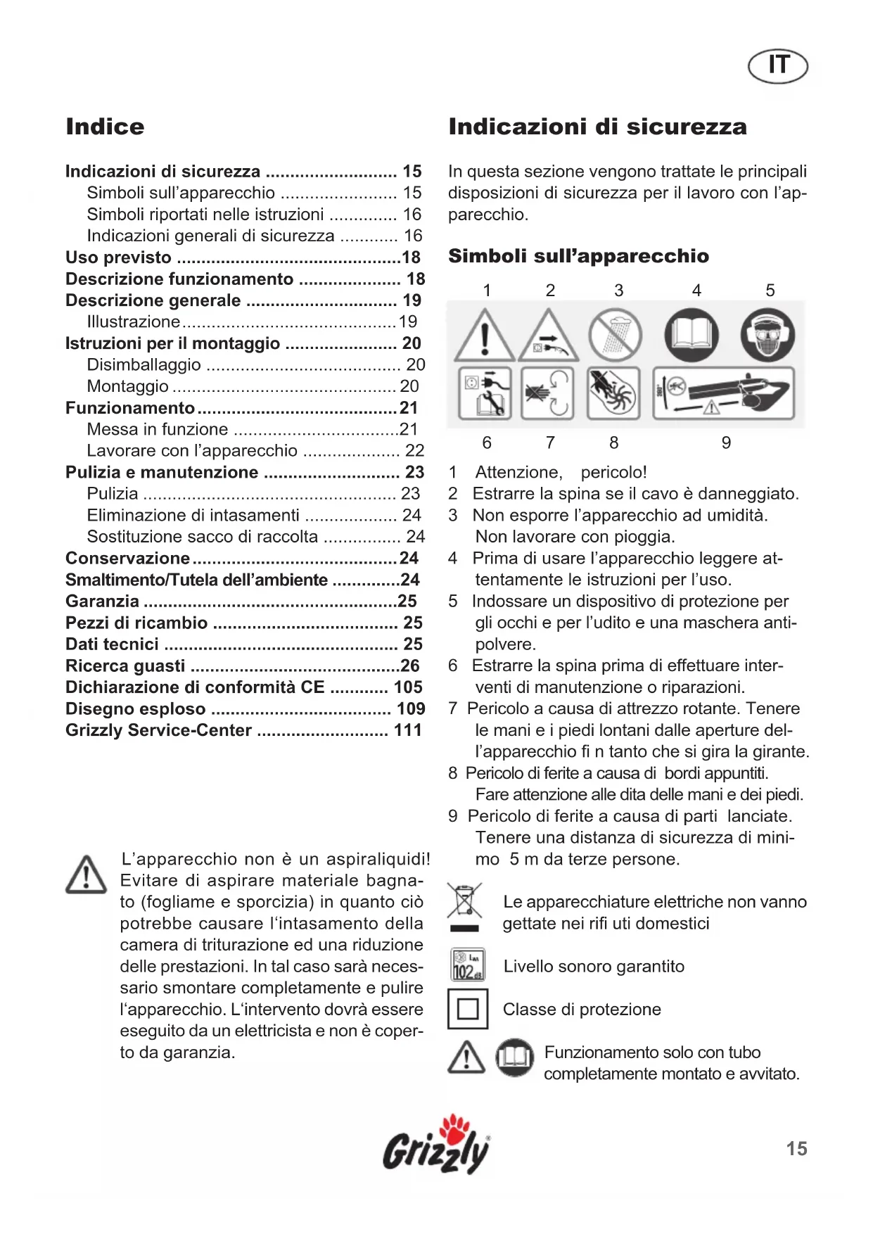 ELS 2201 - Soffiatore Grizzly - Manuale utente e istruzioni gratuiti
