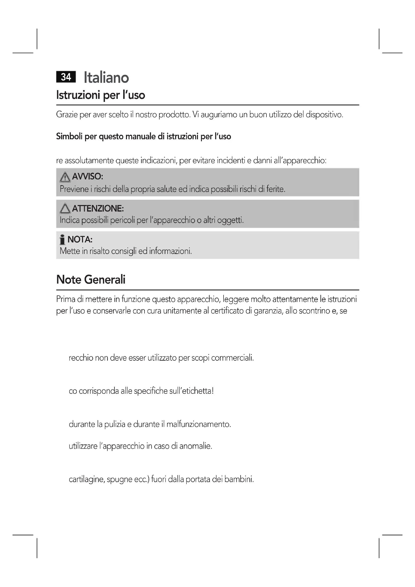 34 Italiano Istruzioni per l'uso