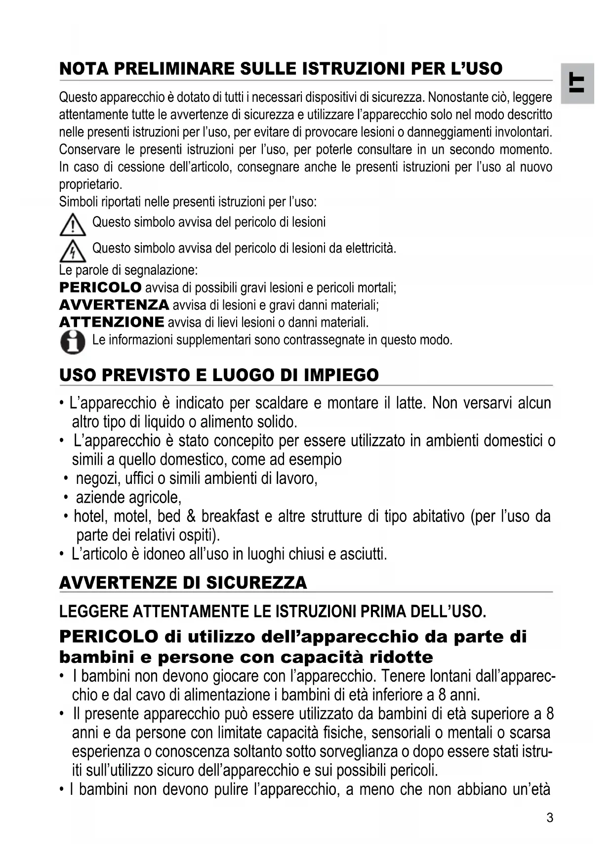 - L'apparecchio è indicato per scaldare e montare il latte. Non versarvi alcun altro tipo di liquido o alimento solido.