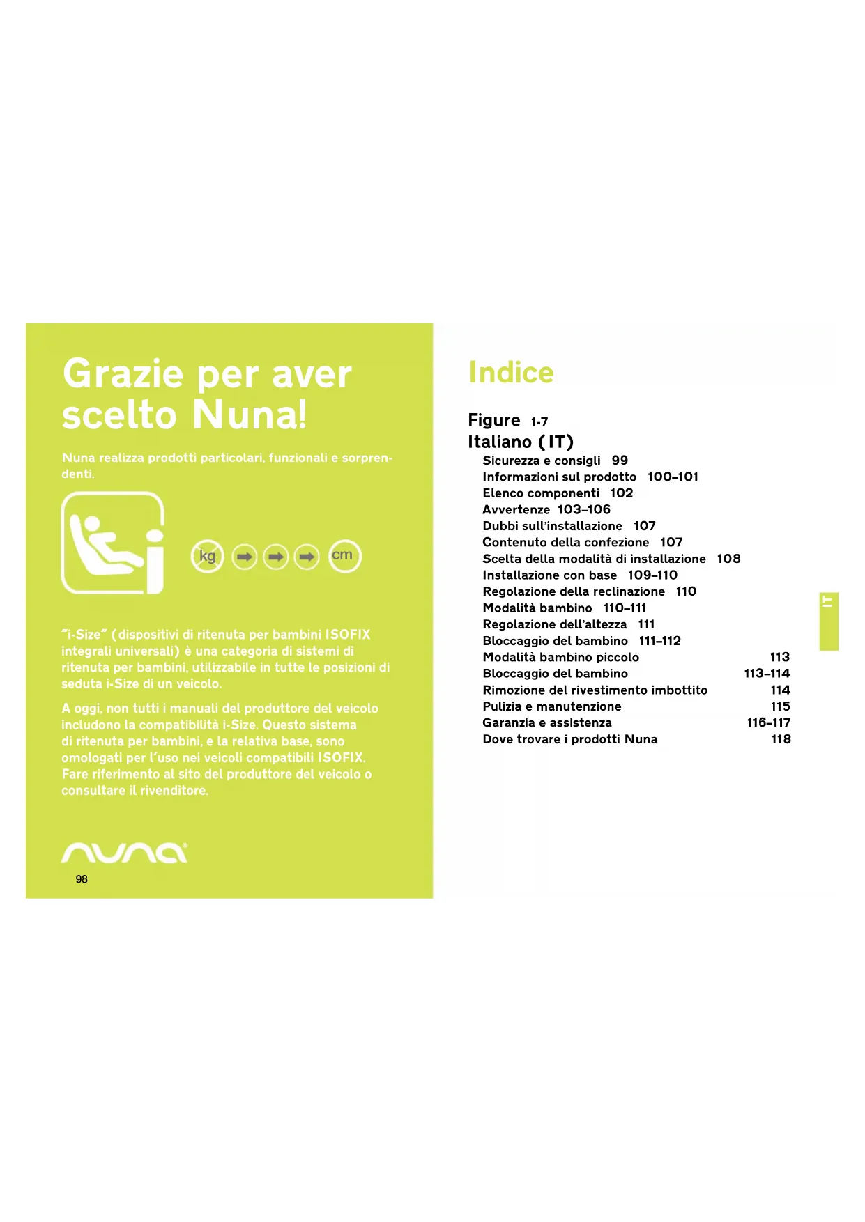 Scarica le istruzioni per il tuo Seggiolino auto in formato PDF gratuitamente! Trova il tuo manuale Rebl - Nuna e riprendi in mano il tuo dispositivo elettronico. In questa pagina sono pubblicati tutti i documenti necessari per l'utilizzo del tuo dispositivo. Rebl del marchio Nuna.