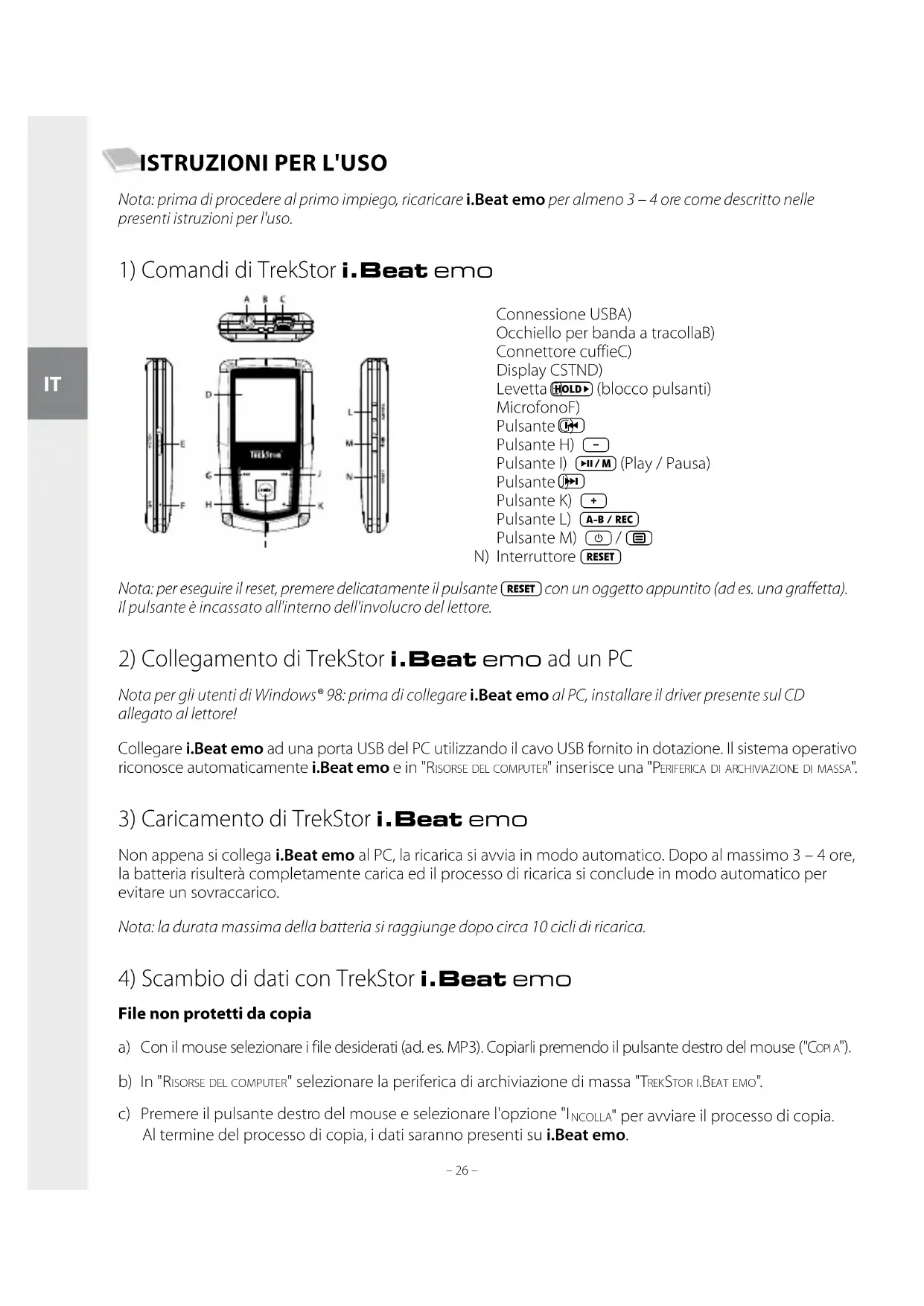 I.Beat emo - Lettore mp3 TrekStor - Manuale utente e istruzioni gratuiti