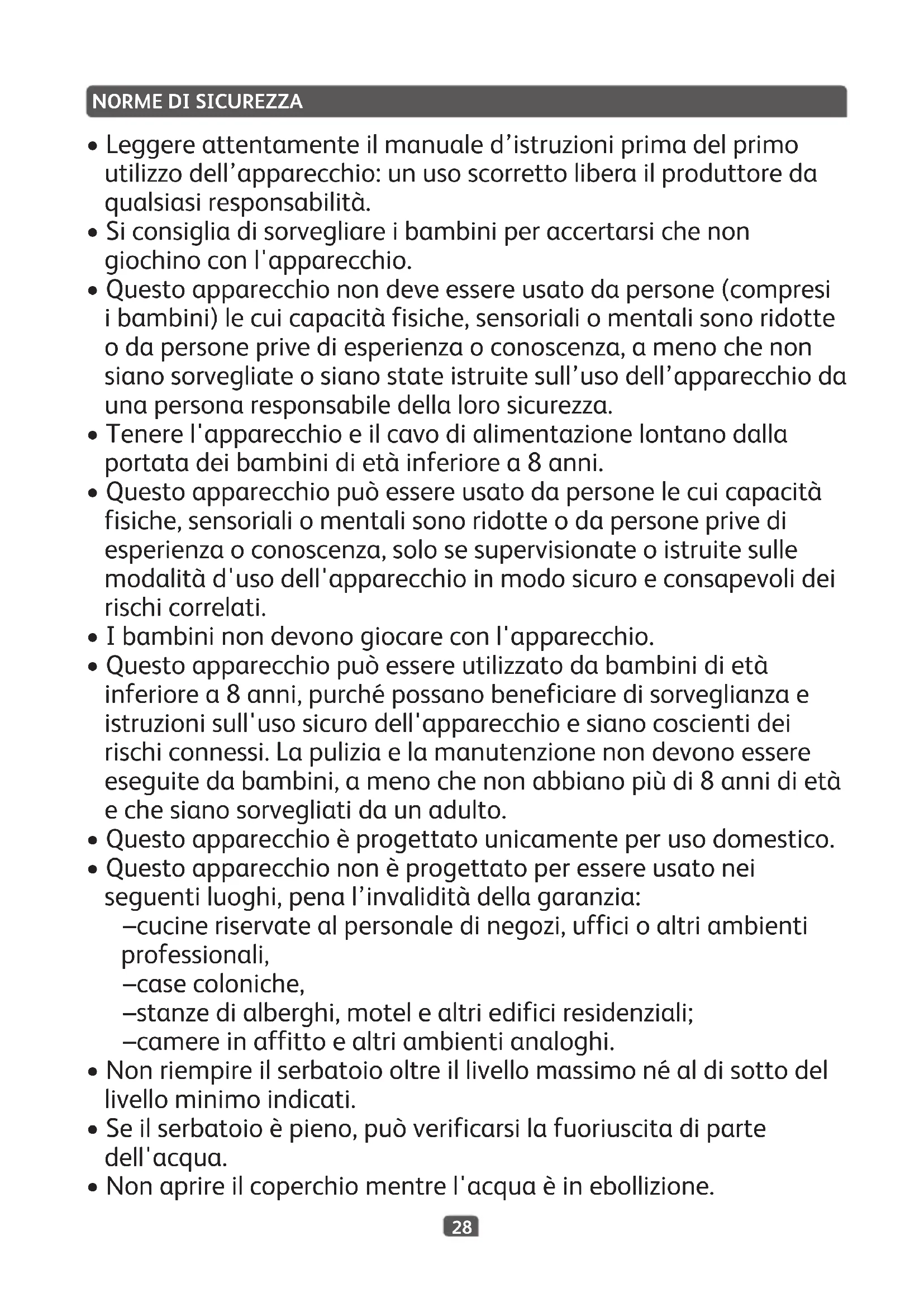 - Utilizzareesclusivamenteperbollireacqua.