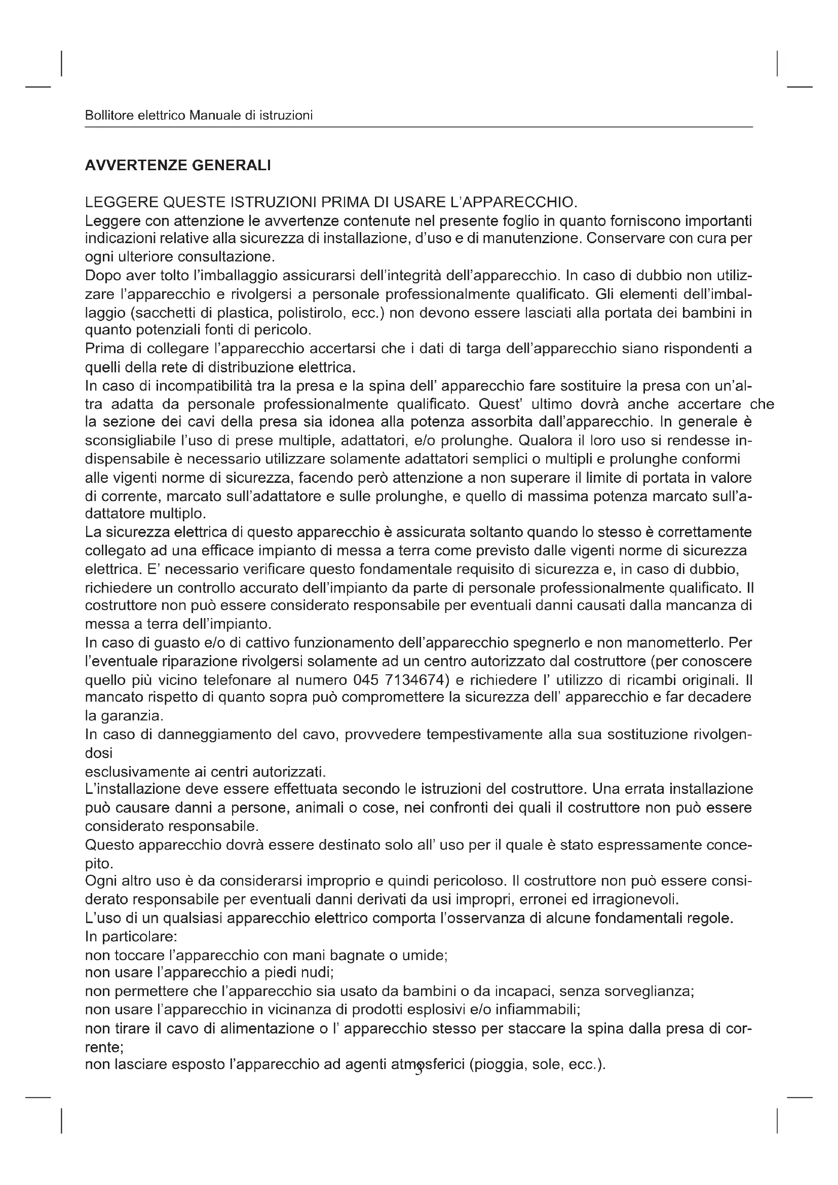 In caso di guasto e/o di cattivo funzionamento dell'apparecchio spegnerlo e non manometterlo. Per l'eventuale riparazione rivolgersi solamente ad un centro autorizzato dal costruttore (per conoscere quello più vicino telefonare al numero 045 7134674) e richiedere l'utilizzo di ricambi originali. Il mancato rispetto di quanto sopra può compromettere la sicurezza dell'apparecchio e far decadere la garanzia.