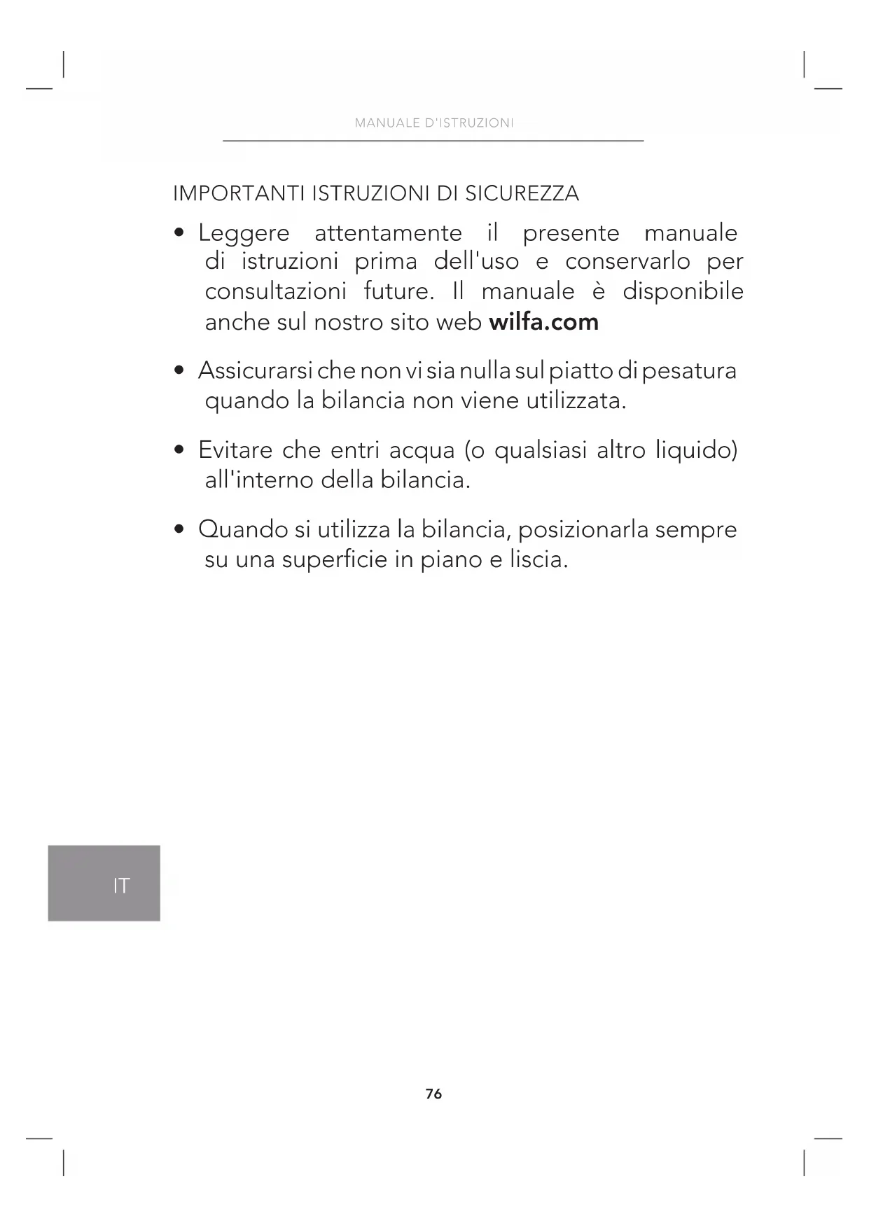- Leggere attentamente il presente manuale di istruzioni prima dell'uso e conservarlo per consultazioni future. Il manuale è disponibile anche sul nostro sito web wilfa.com