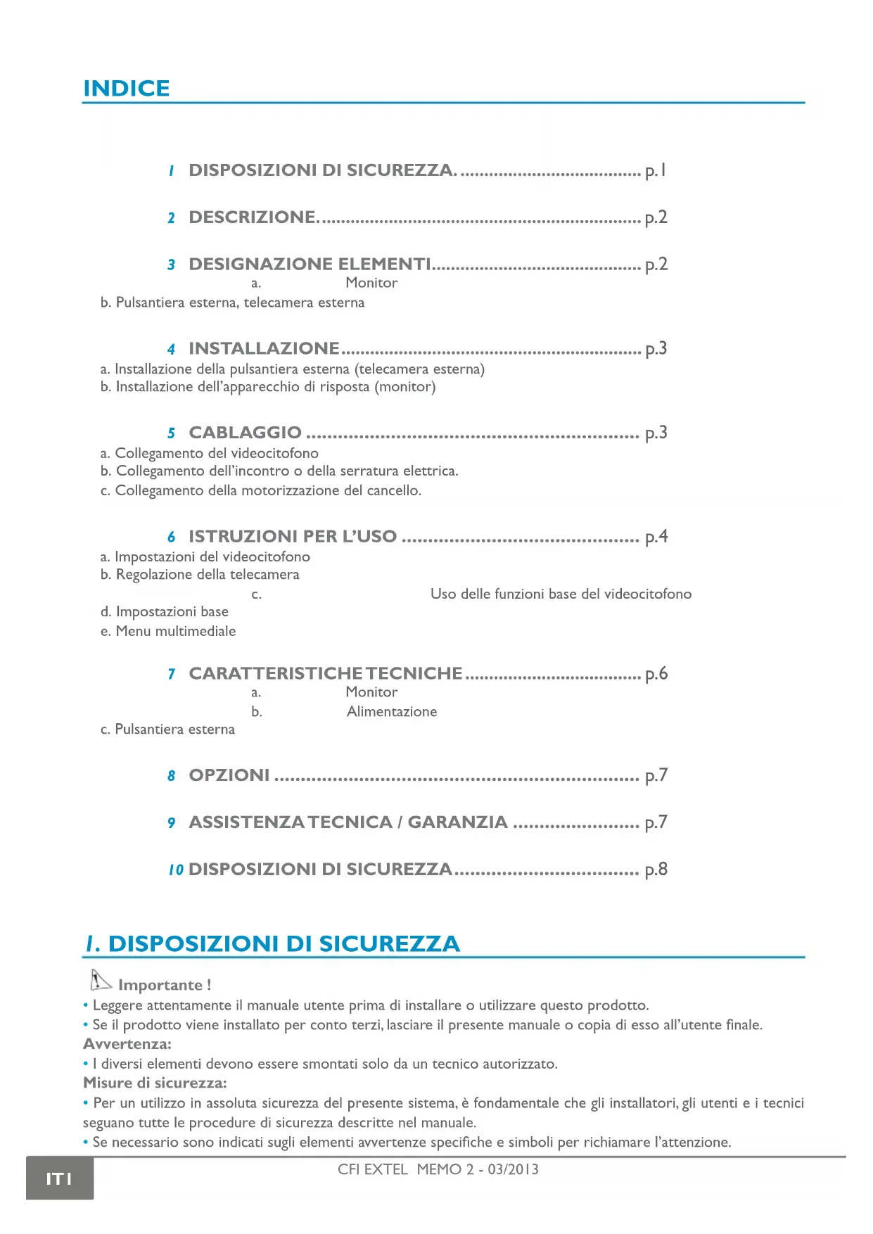 - Se necessario sono indicati sugli elementi avvertenze specifiche e simboli per richiamare l’attenzione.CFI EXTEL MEMO 2 - 03/2013 IT2