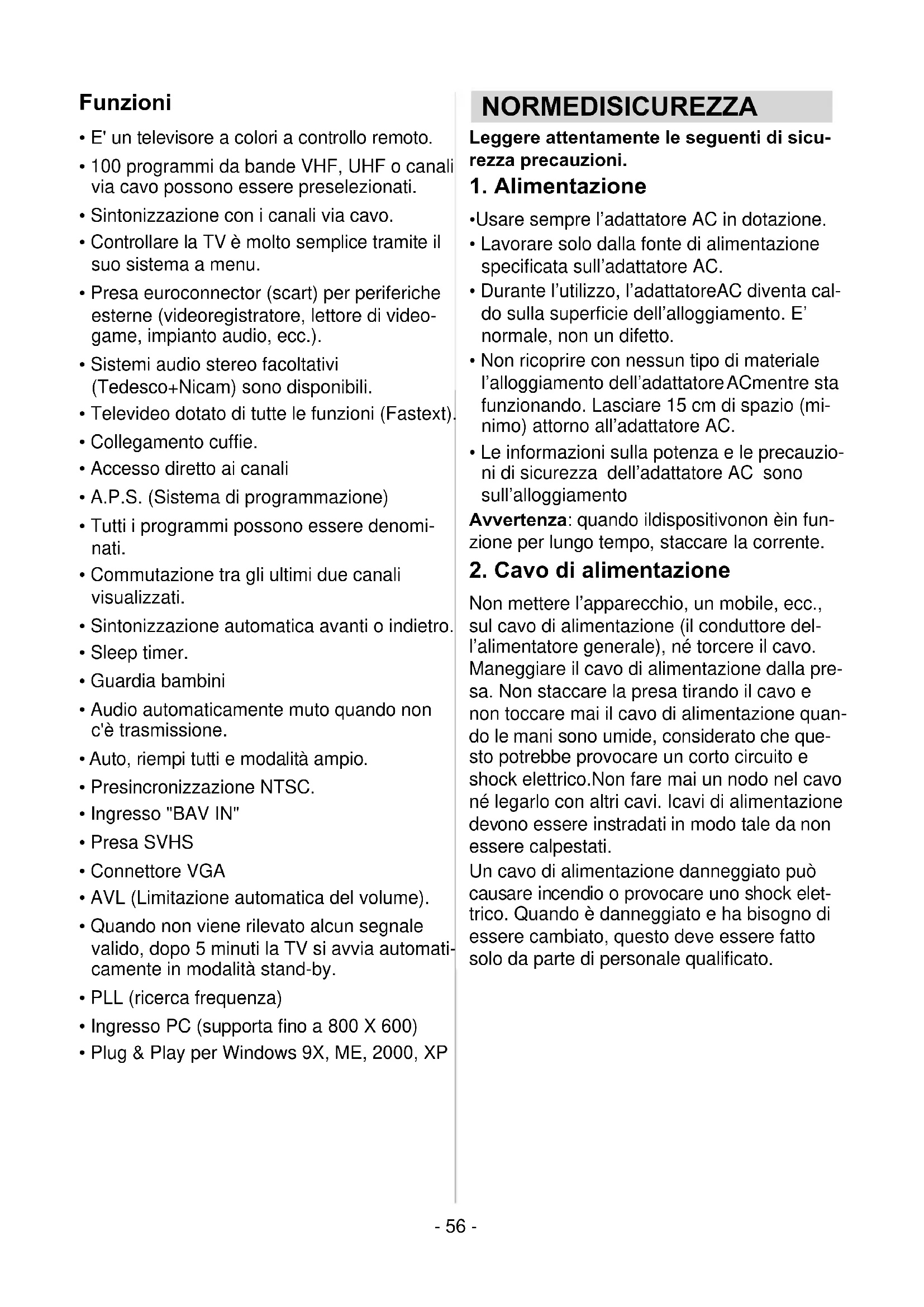 - Plug & Play per Windows 9X, ME, 2000, XP NORMEDISICUREZZA Leggere attentamente le seguenti di sicu- rezza precauzioni.